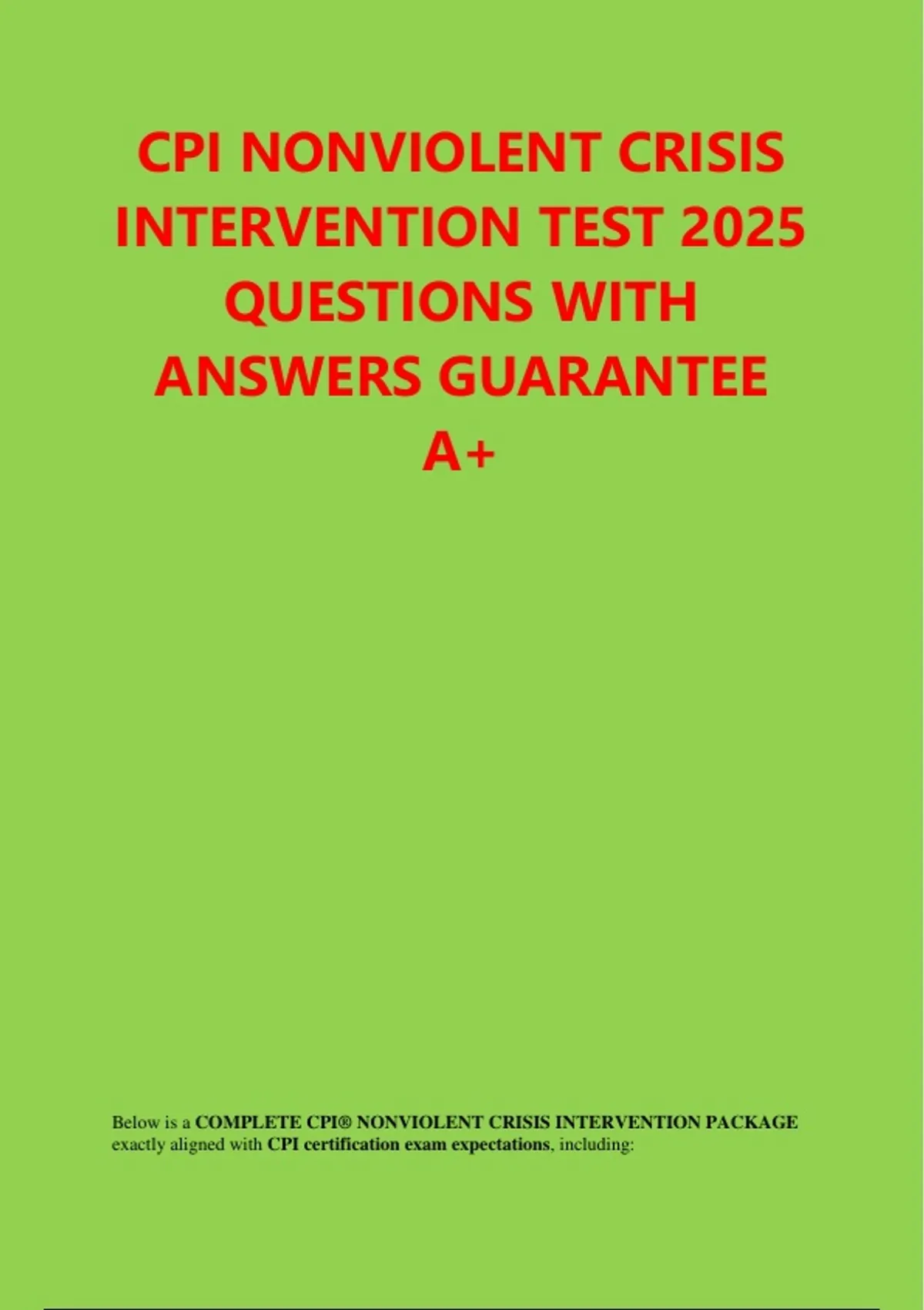 Below is a COMPLETE CPI® NONVIOLENT CRISIS INTERVENTION PACKAGE
