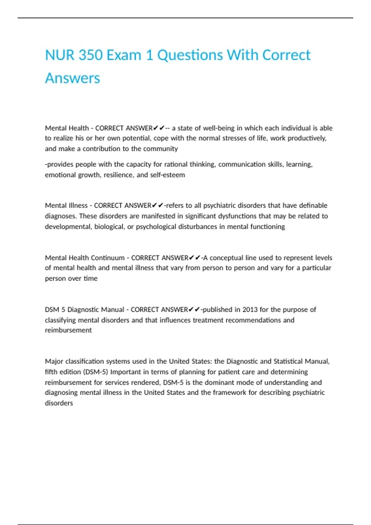 NUR 350 Exam 1 Questions With Correct Answers