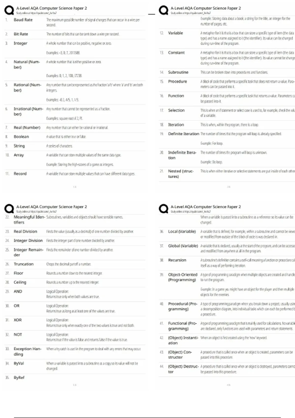 A-Level AQA Computer Science Paper 2