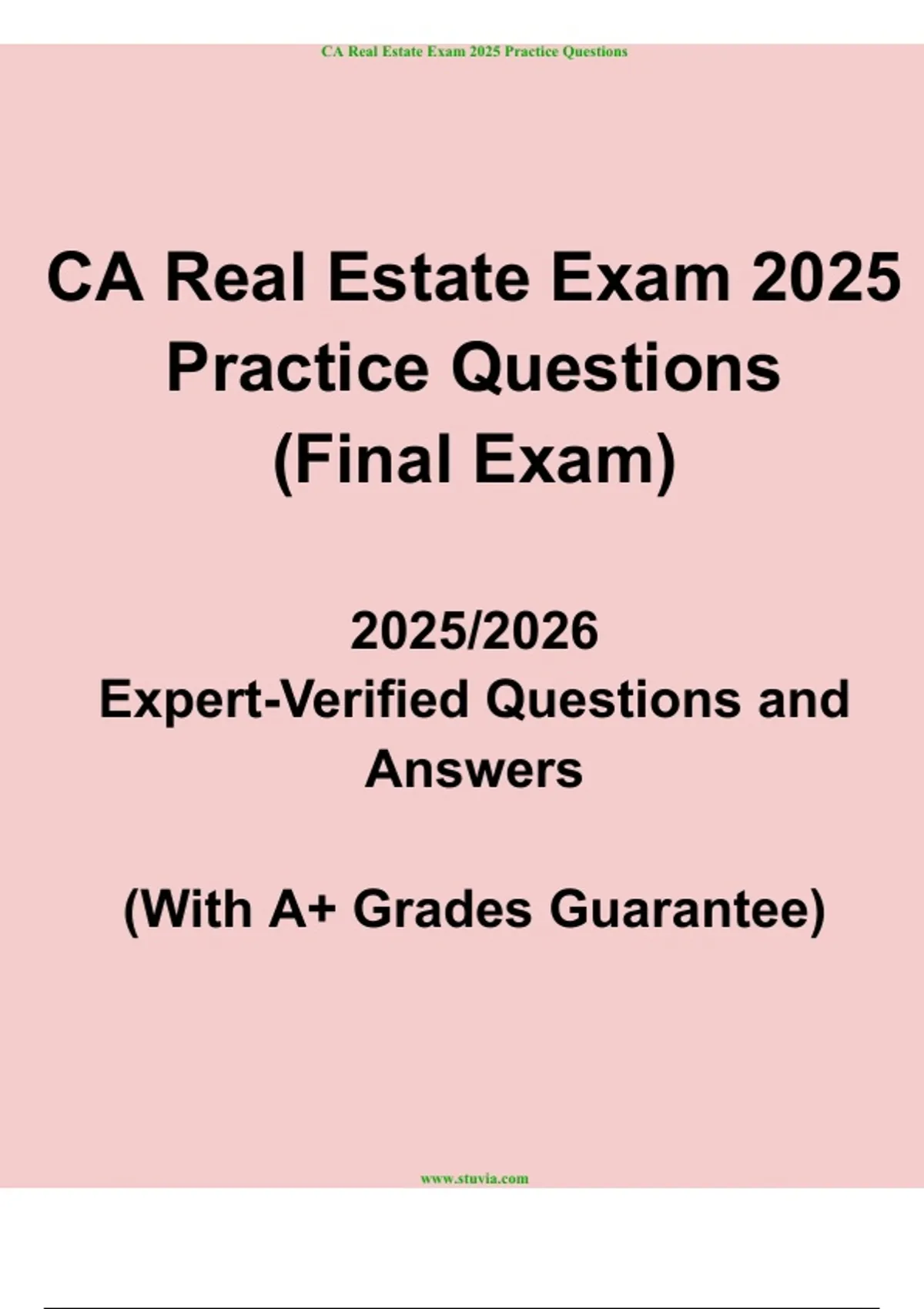 This CA Real Estate Exam 2025 Practice Questions resource provides concise coverage of California property law, contracts, real estate principles, and practice questions, helping candidates efficiently prepare for the California real estate licensing exam.