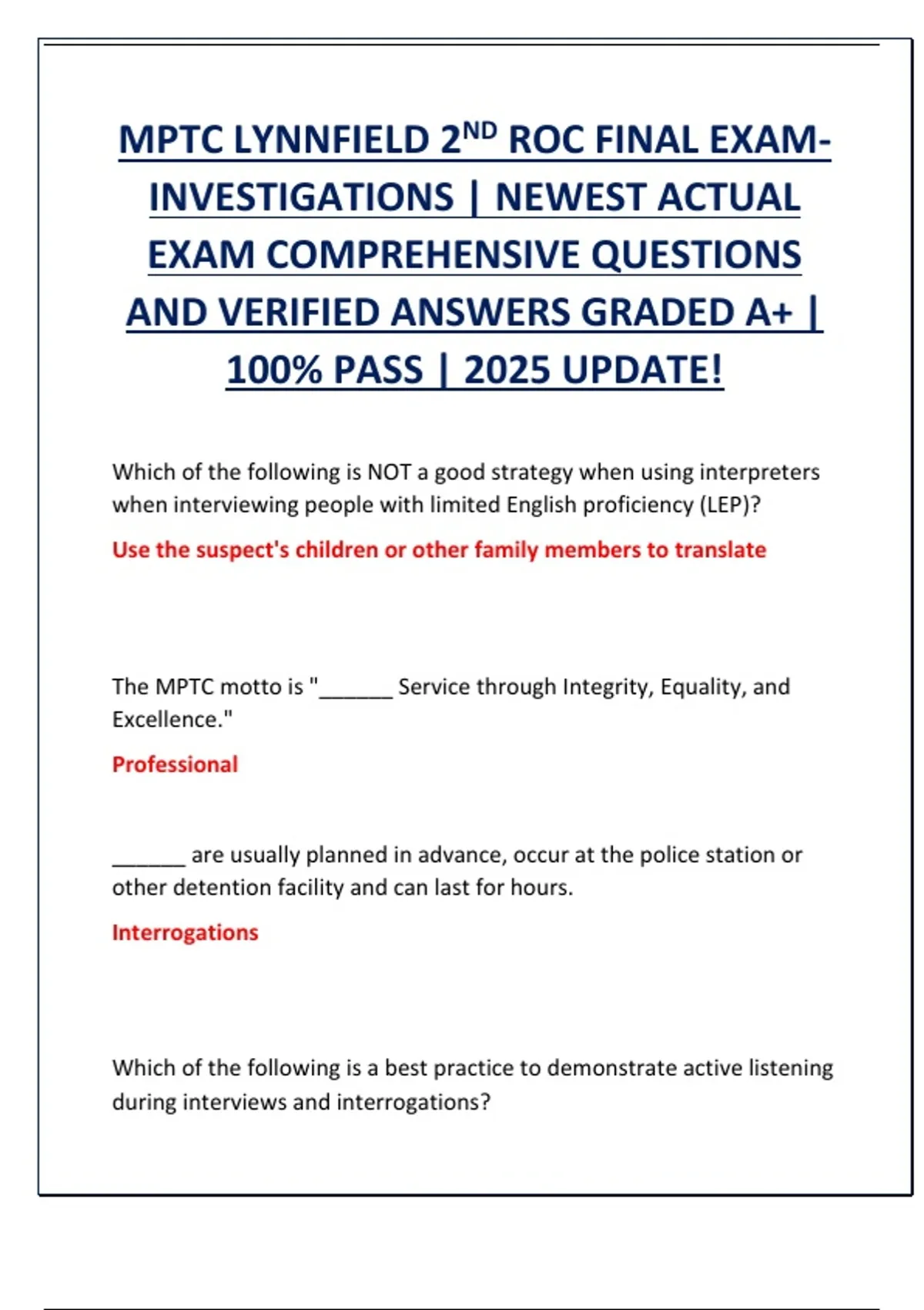 MPTC Lynnfield 2nd ROC Final Exam | Practice Questions & Verified Answers
