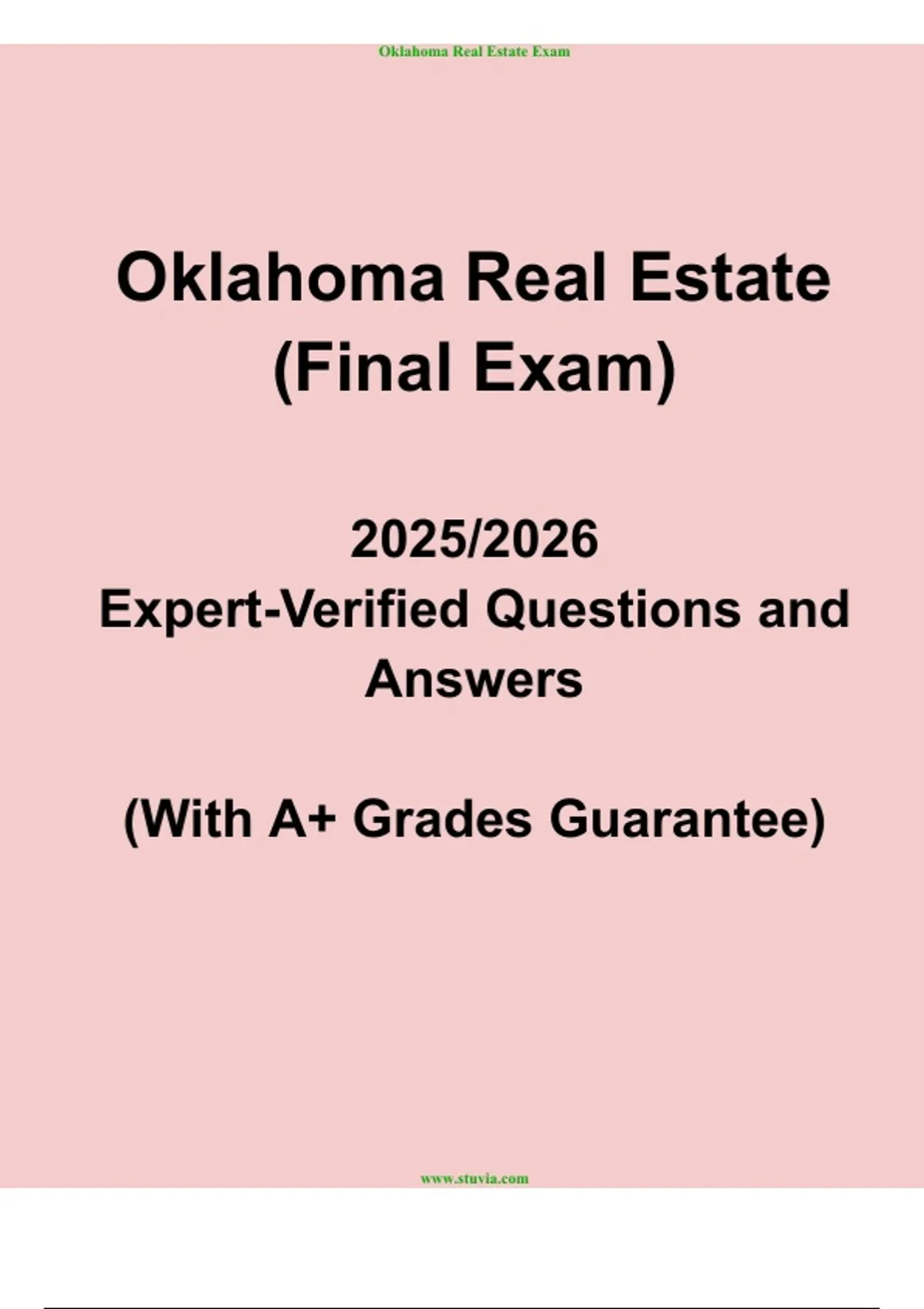 This Oklahoma Real Estate Exam PDF provides detailed coverage of state-specific property laws, contracts, and core real estate principles, along with exam-style practice questions, helping candidates confidently prepare for the Oklahoma real estate licensing exam.