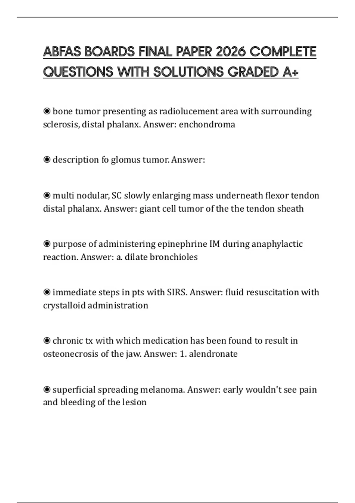 ABFAS BOARDS FINAL PAPER 2026 COMPLETE QUESTIONS WITH SOLUTIONS GRADED A+