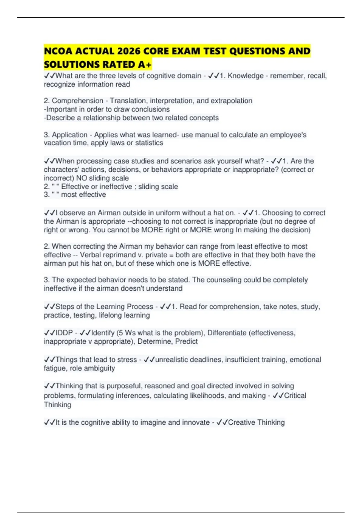 NCOA ACTUAL 2026 TEST PAPER QUESTIONS AND SOLUTIONS RATED A+