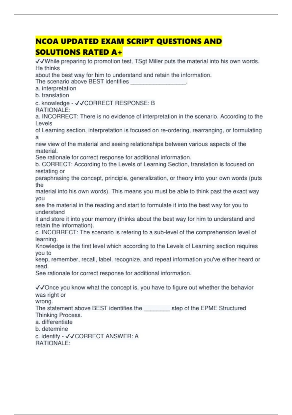 NCOA UPDATED EXAM SCRIPT QUESTIONS AND