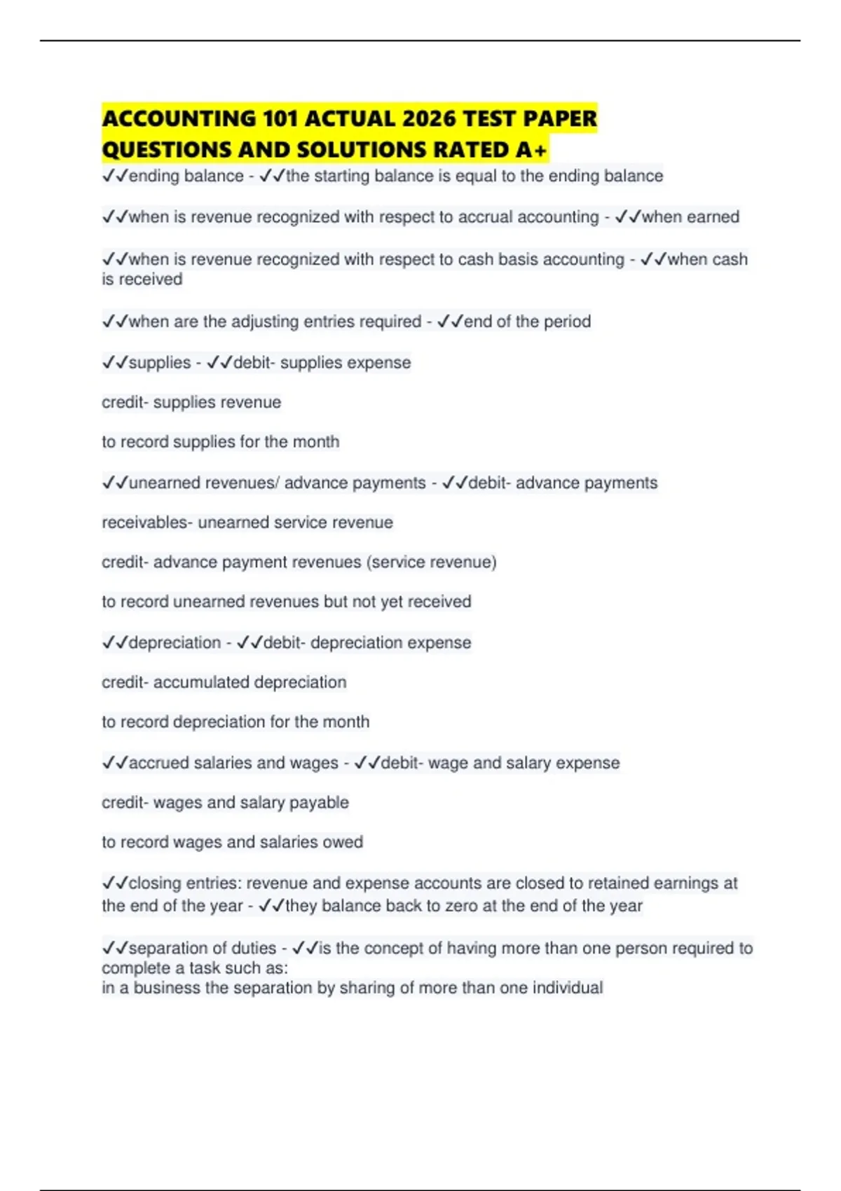 ACCOUNTING 101 ACTUAL 2026 TEST PAPER QUESTIONS AND SOLUTIONS RATED A+