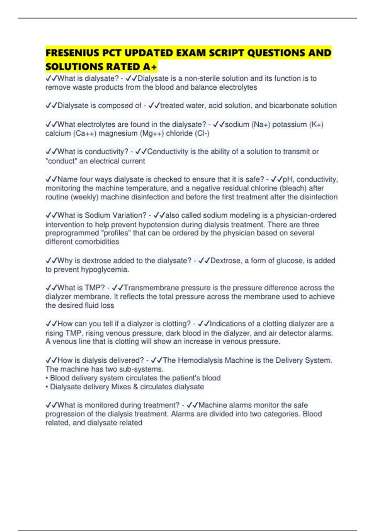 FRESENIUS PCT UPDATED EXAM SCRIPT QUESTIONS AND SOLUTIONS RATED A.pdf