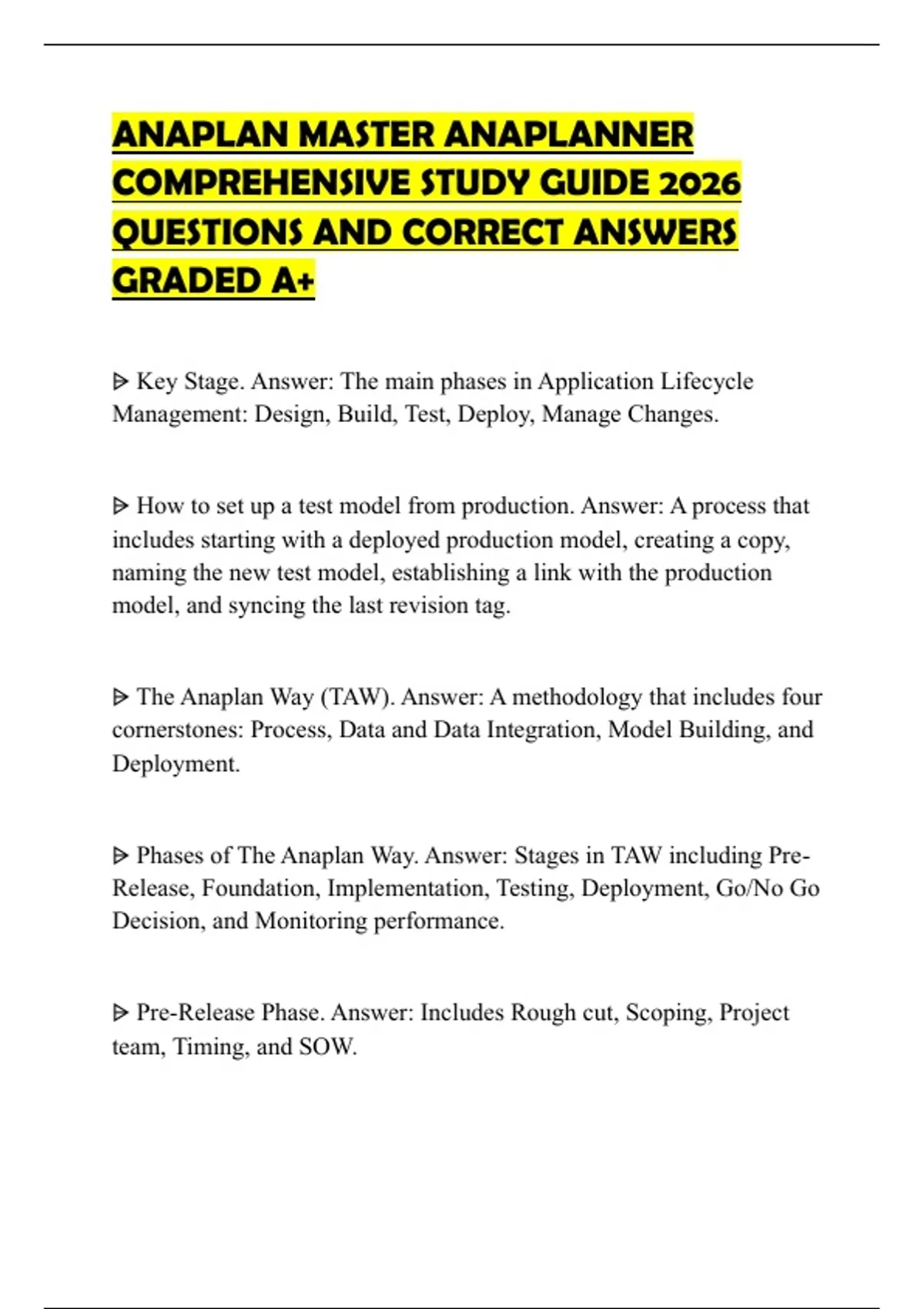 ANAPLAN MASTER ANAPLANNER COMPREHENSIVE STUDY GUIDE 2026 QUESTIONS AND CORRECT ANSWERS GRADED A+
