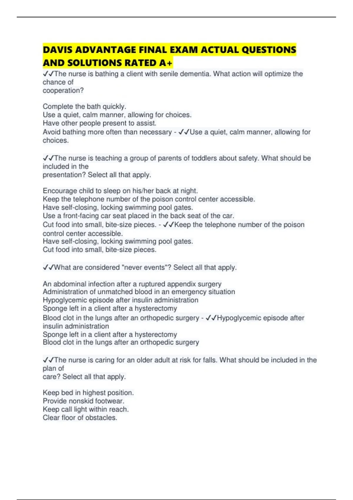 ✔✔The nurse knows that falls most often occur in hospitals and long-term care facilities