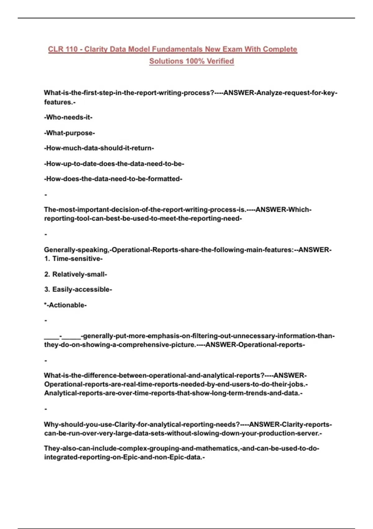 CLR 110 - Clarity Data Model Fundamentals New Exam With Complete