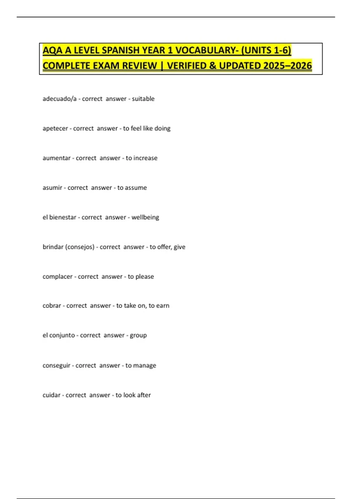 AQA A LEVEL SPANISH YEAR 1 VOCABULARY- (UNITS 1-6)