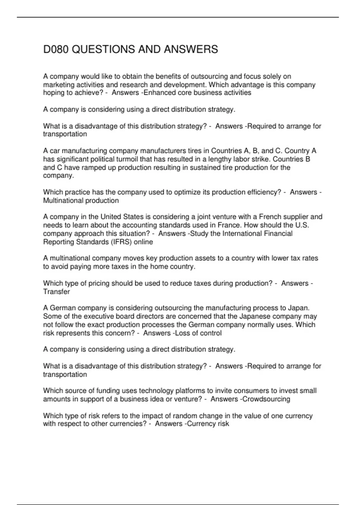 D080 QUESTIONS AND ANSWERS
