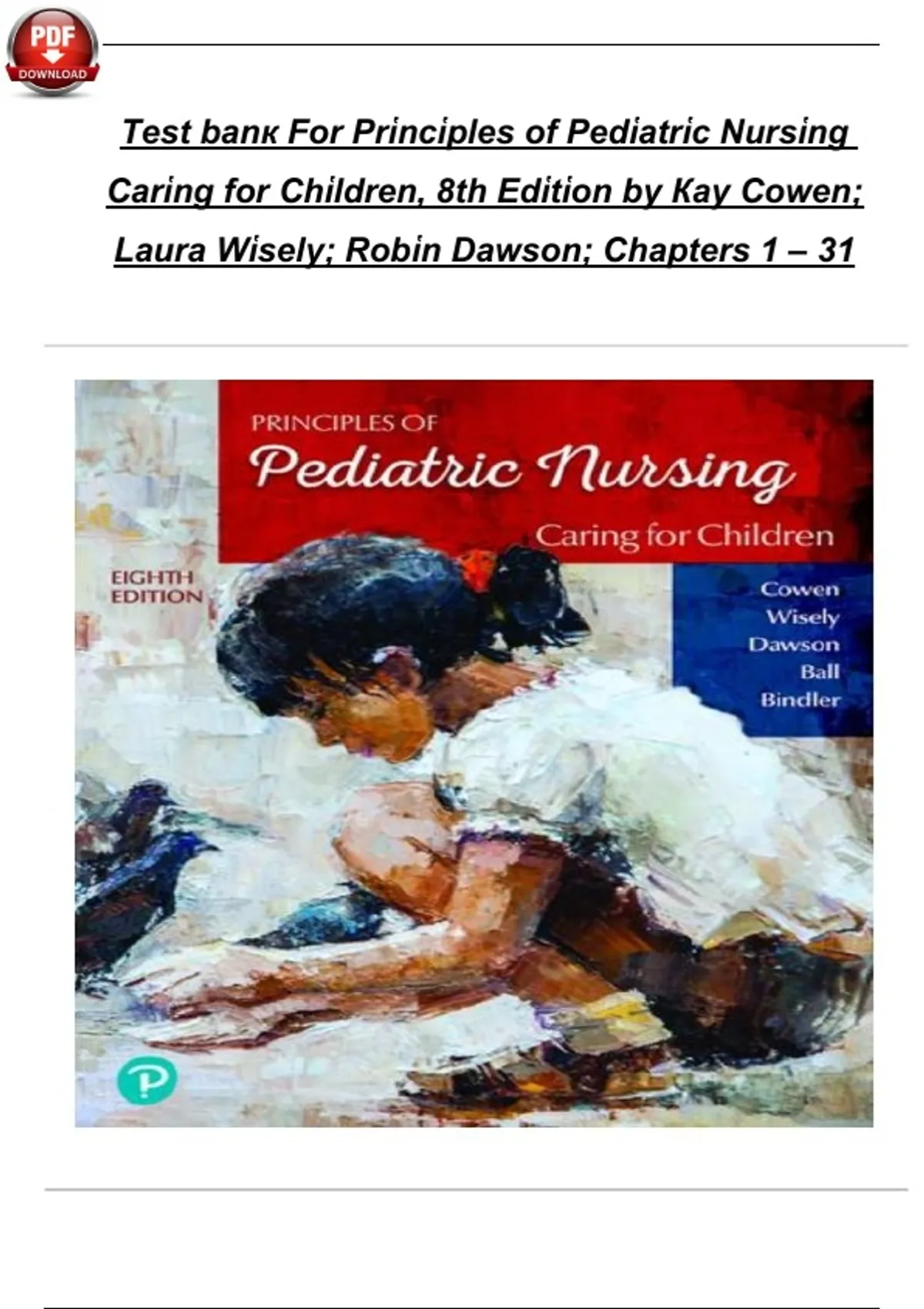 ,Prἱncἱples of Pedἱatrἱc Nursἱng: Carἱng for Chἱldren, 8e Jane W. Ball (et al.) Test Banк
