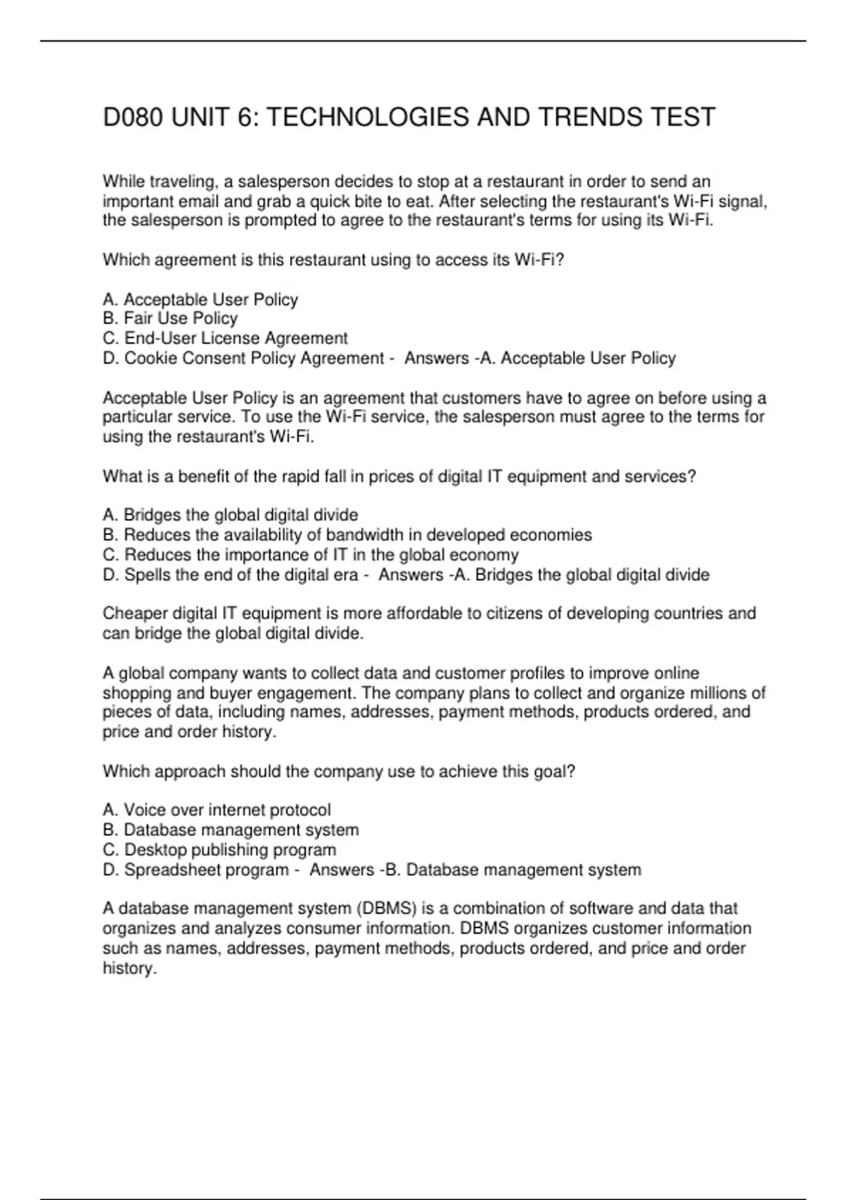 D080 UNIT 6 TECHNOLOGIES AND TRENDS TEST