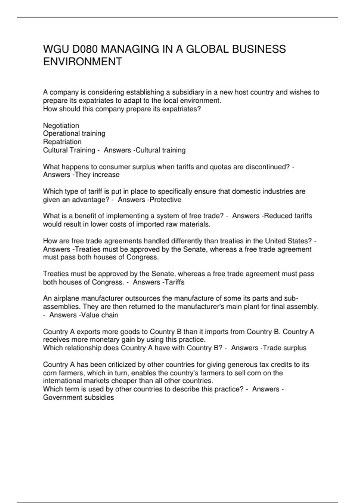WGU D080 MANAGING IN A GLOBAL BUSINESS