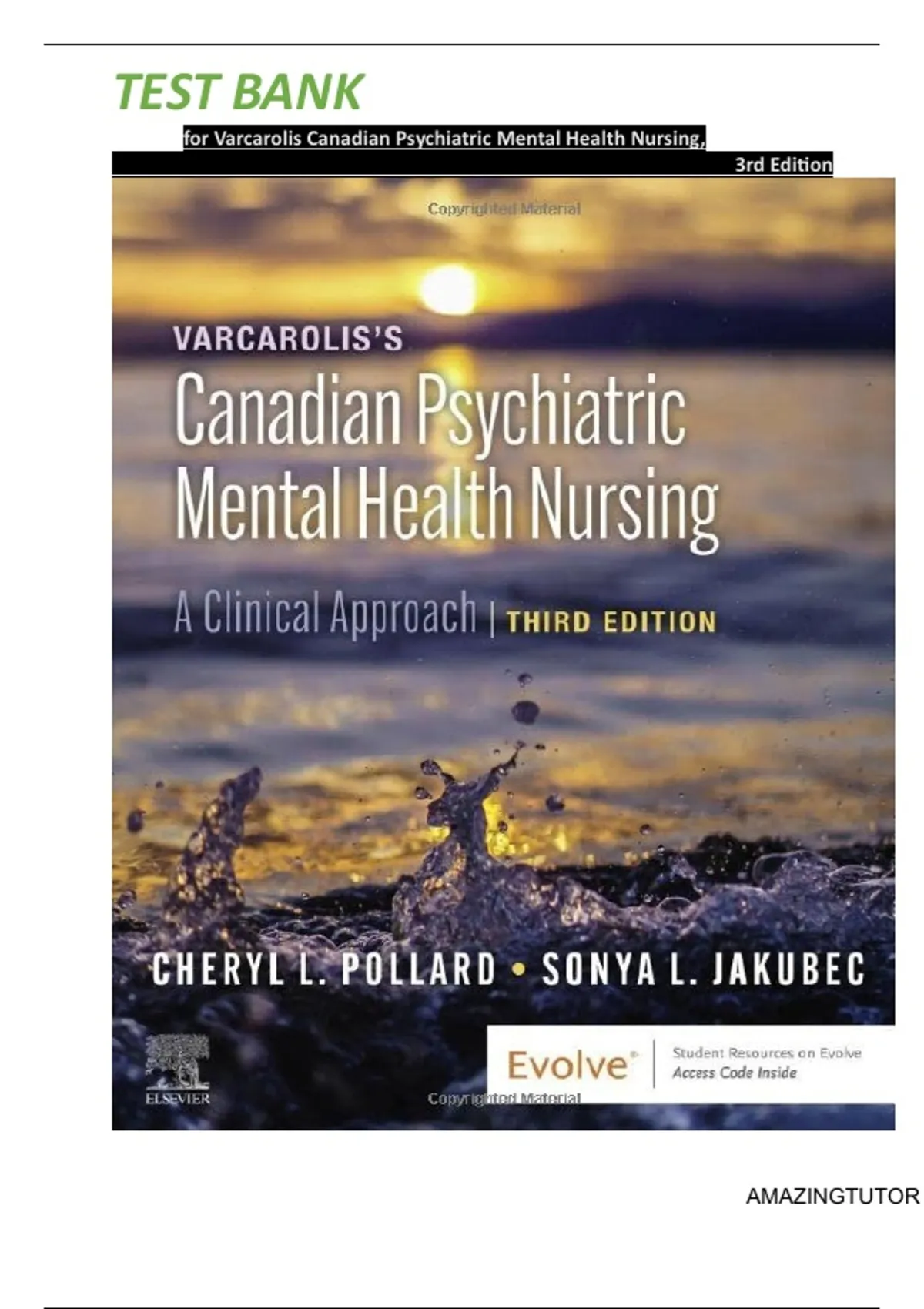 Test Bank - Varcarolis Canadian Psychiatric Mental Health Nursing, 3rd Edition (Pollard, 2023), Chapter 1-35. Full Chapters Include;...UNIT 1 Foundations in Theory 1 Mental Health and Mental Illness 2 Historical Overview of Psychiatric Mental Health Nursing 3 Overview of Psychiatric Mental Health Nursing Care Within Various Settings 4 Relevant Theories and Therapies for Nursing 5 Understanding Responses to Stress UNIT 2 Foundations in Practice 6 The Nursing Process and Standards of Care for Psychiatric Mental Health Nursing 7 Ethical Responsibilities and Legal Obligations for Psychiatric Mental Health Nursing Practice 8 Cultural Implications for Psychiatric Mental Health Nursing: A Critical Cultural Perspective UNIT 3 Biopsychosocial Interventions 9 Therapeutic Relationships 10 Communication and the Clinical Interview 11 Psychotropic Drugs UNIT 4 Psychobiological Disorders 12 Anxiety and Related Disorders 13 Depressive Disorders 14 Bipolar Disorders 15 Schizophrenia Spectrum and Other Psychotic Disorders 16 Eating and Feeding Disorders 17 Neurocognitive Disorders 18 Psychoactive Substance Use and Treatment 19 Personality Disorders 20 Sleep–Wake Disorders Unit 5 Trauma Interventions 21 Crisis and Disaster 22 Suicide and Non-suicidal Self-Injury 23 Anger, Aggression, and Violence 24 Interpersonal Violence: Child, Older Persons, and Intimate Partner Abuse 25 Sexual Assault UNIT 6 Interventions for Distinct Populations 26 Sexuality and Gender 27 Disorders of Children and Adolescents 28 Psychosocial Needs of the Older Person 29 Recovery, Survivorship, and Public Mental Health Approaches 30 Psychological Needs of Patients With Medical Conditions 31 Care for the Dying and for Those Who Grieve 32 Forensic Psychiatric Nursing UNIT 7 Advanced Intervention Modalities 33 Therapeutic Groups 34 Family Interventions 35 Integrative and Complementary Therapies PDF