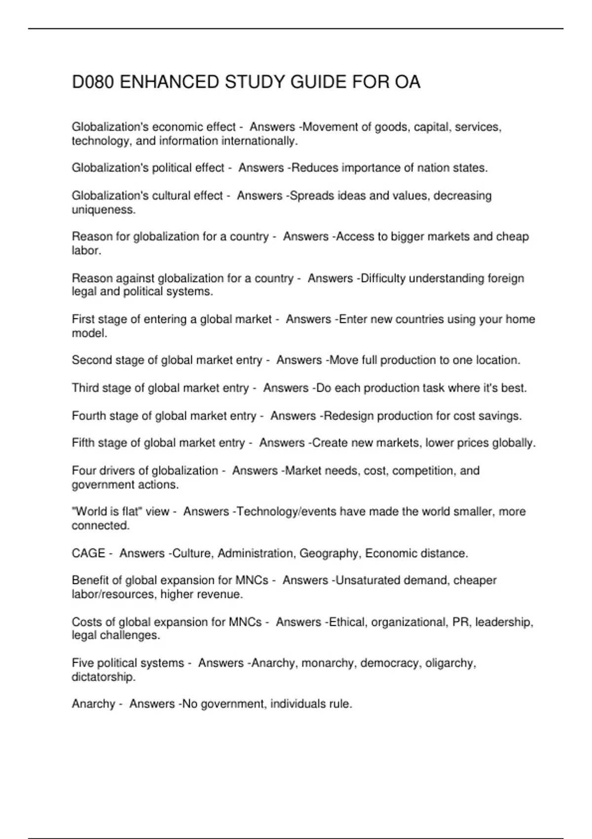 D080 ENHANCED STUDY GUIDE FOR OA