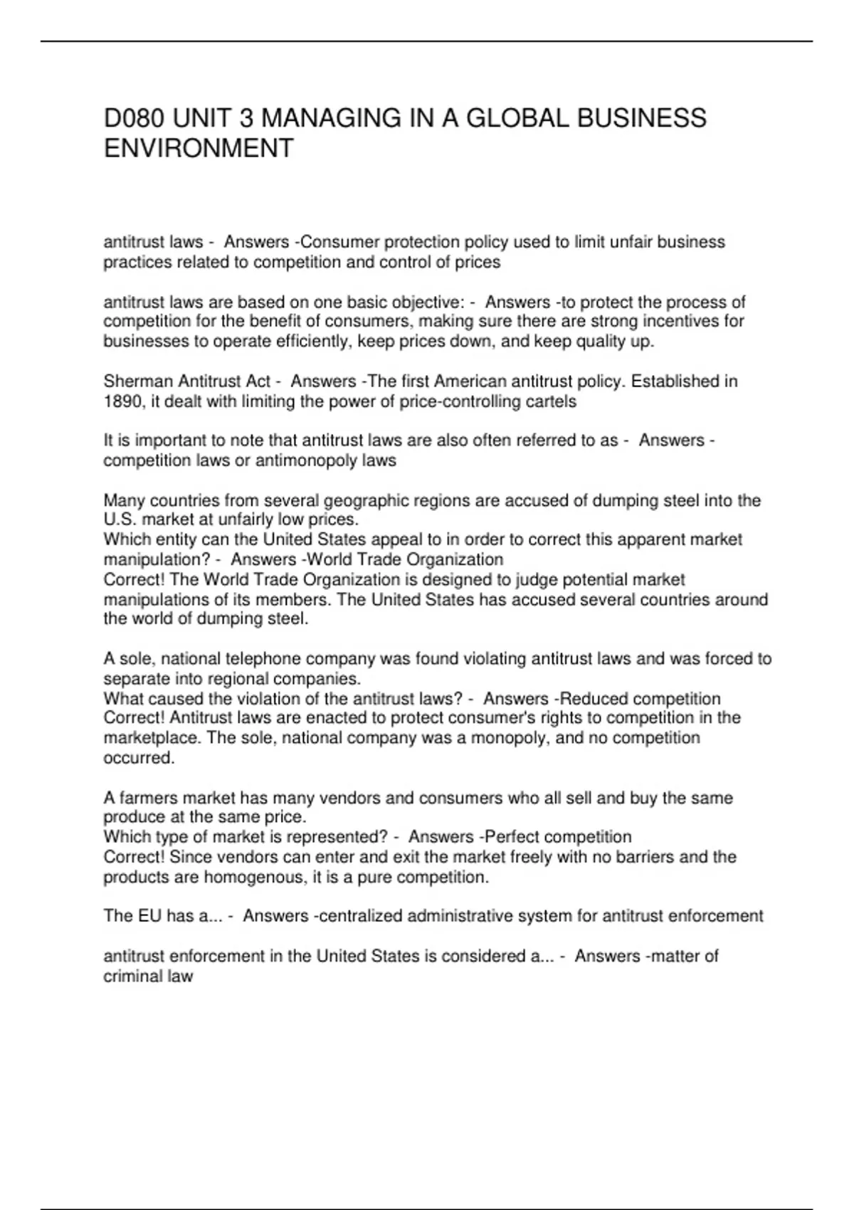 D080 UNIT 3 MANAGING IN A GLOBAL BUSINESS ENVIRONMENT