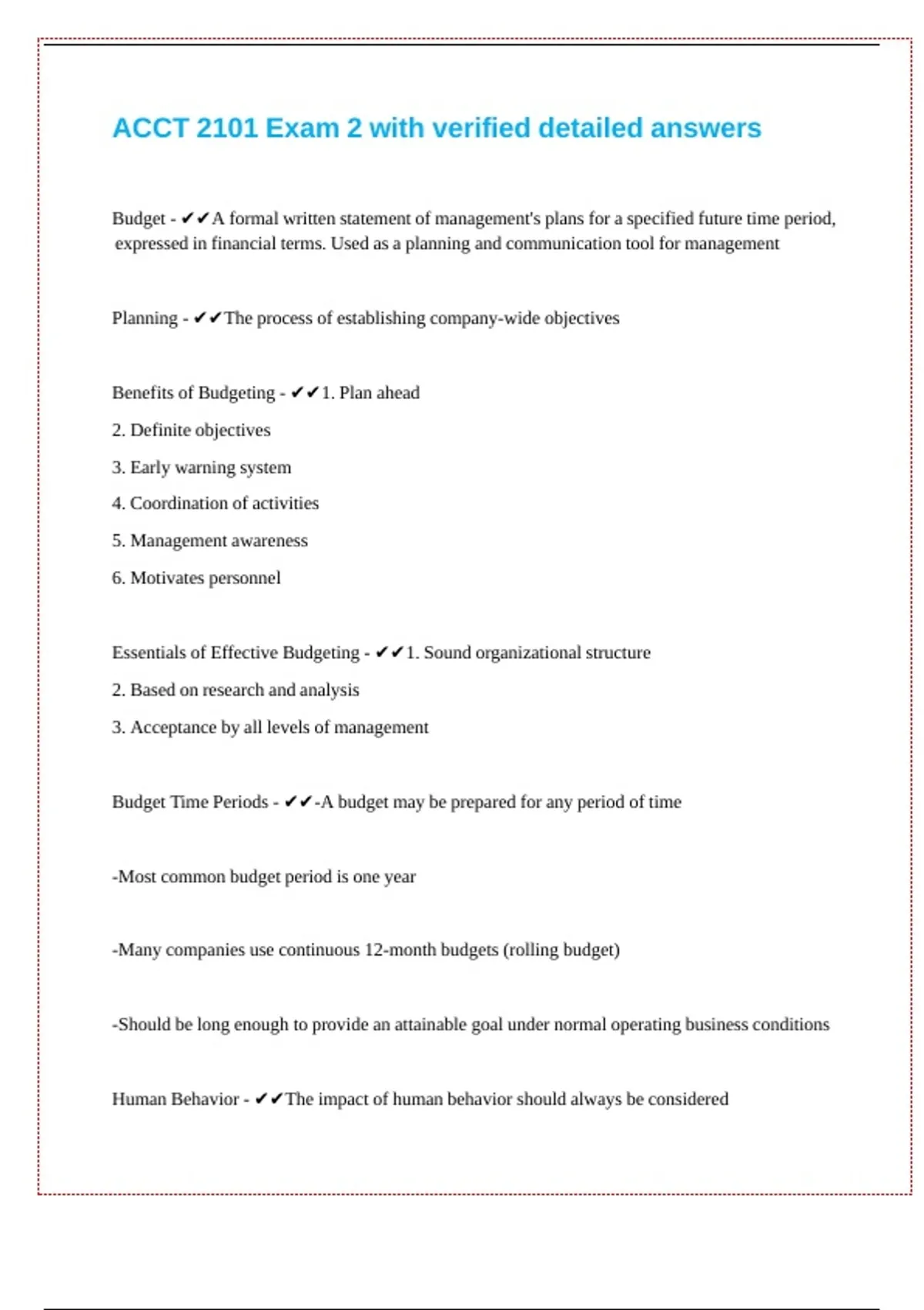 ACCT 2101 Exam 2 with verified detailed answers || || || || || || ||