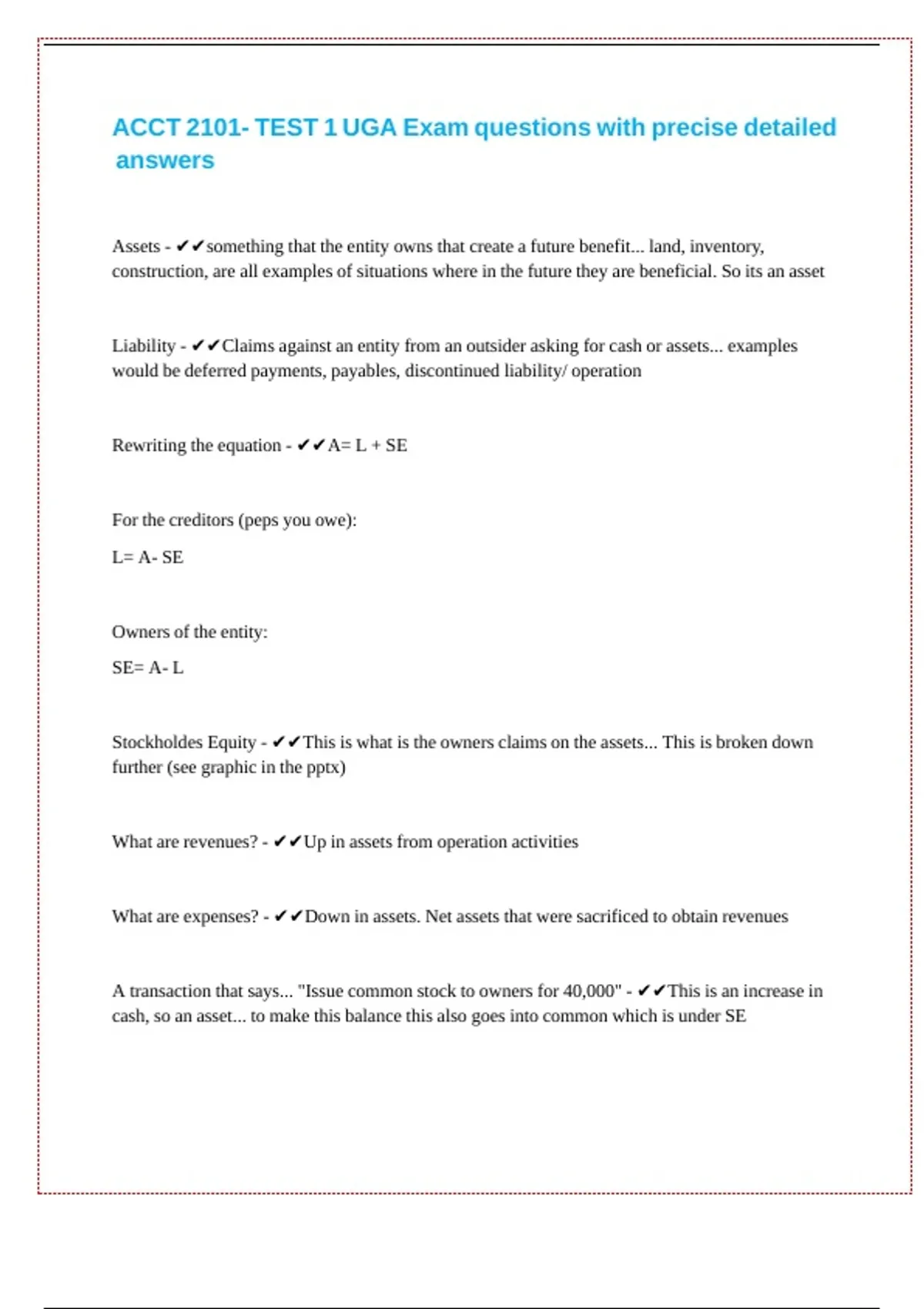 ACCT 2101- TEST 1 UGA Exam questions with precise detailed || || || || || || || || ||