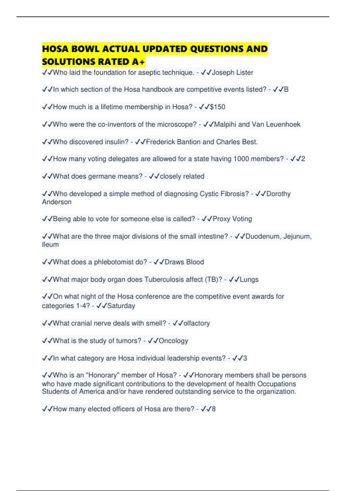 ✔✔In which section of the Hosa handbook are competitive events listed? - ✔✔B
