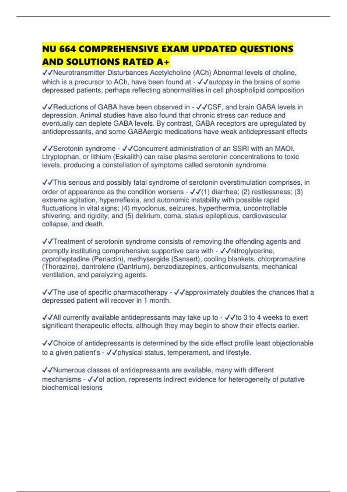 NU 664 COMPREHENSIVE EXAM UPDATED QUESTIONS AND SOLUTIONS RATED A+