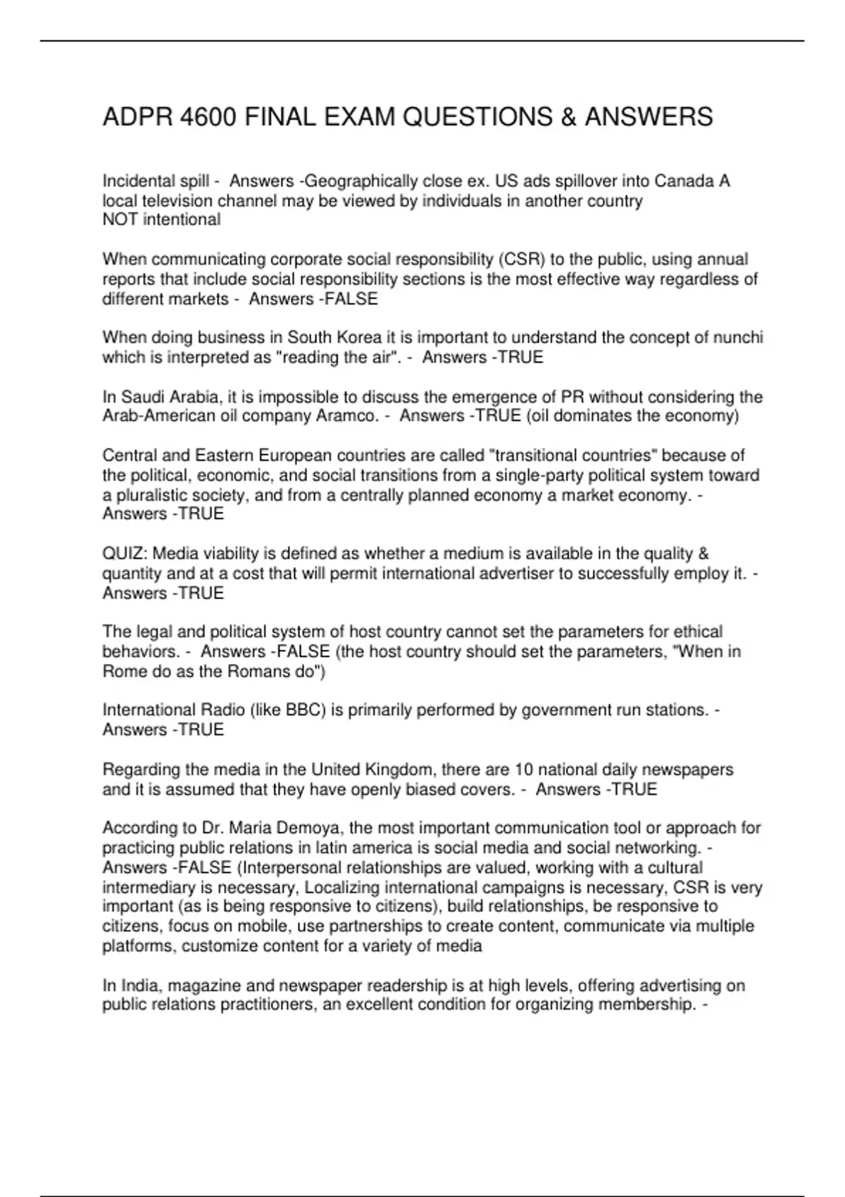 Answers -TRUE