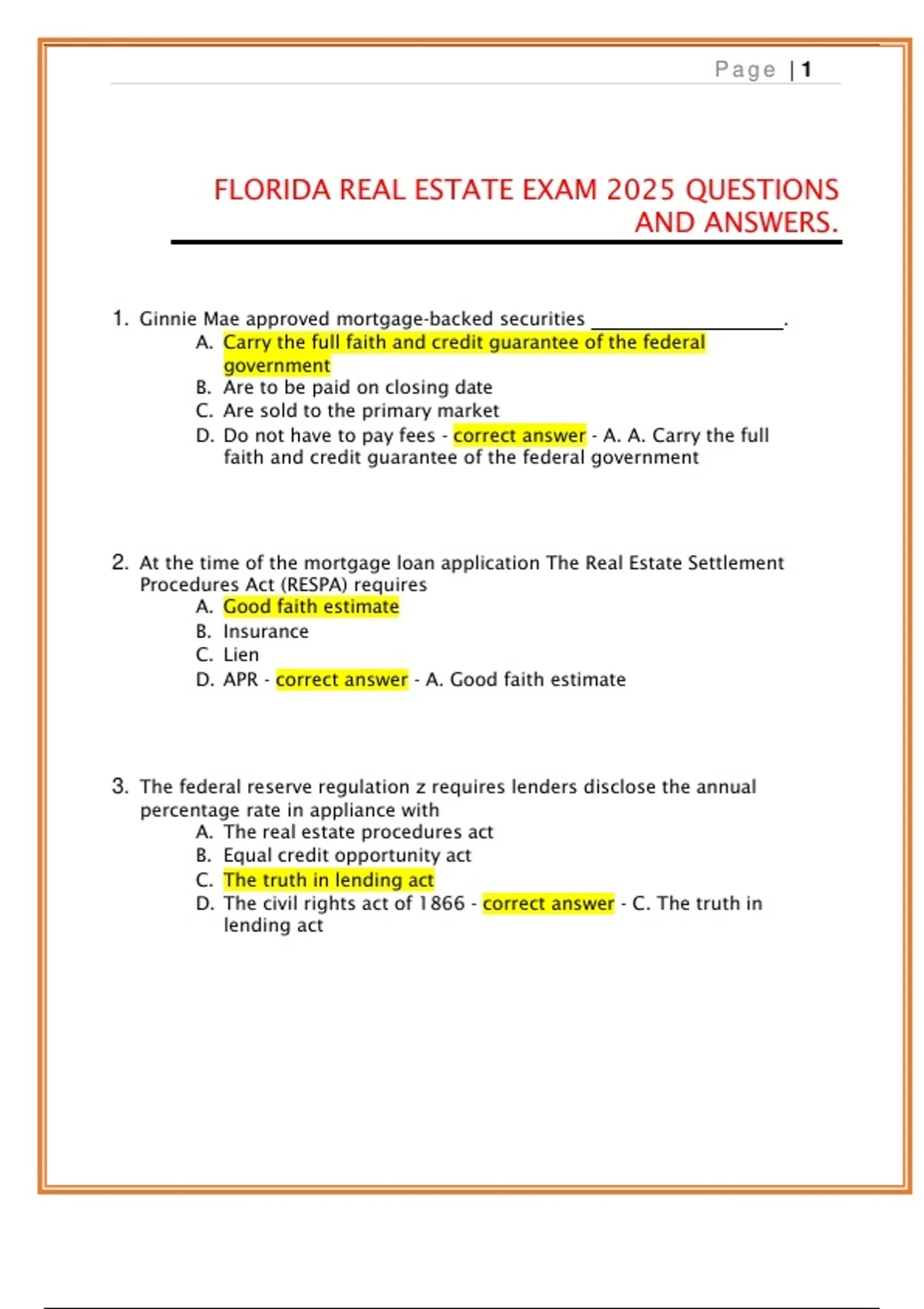Florida Real Estate Exam 2025 | Questions & Answers | Exam Prep