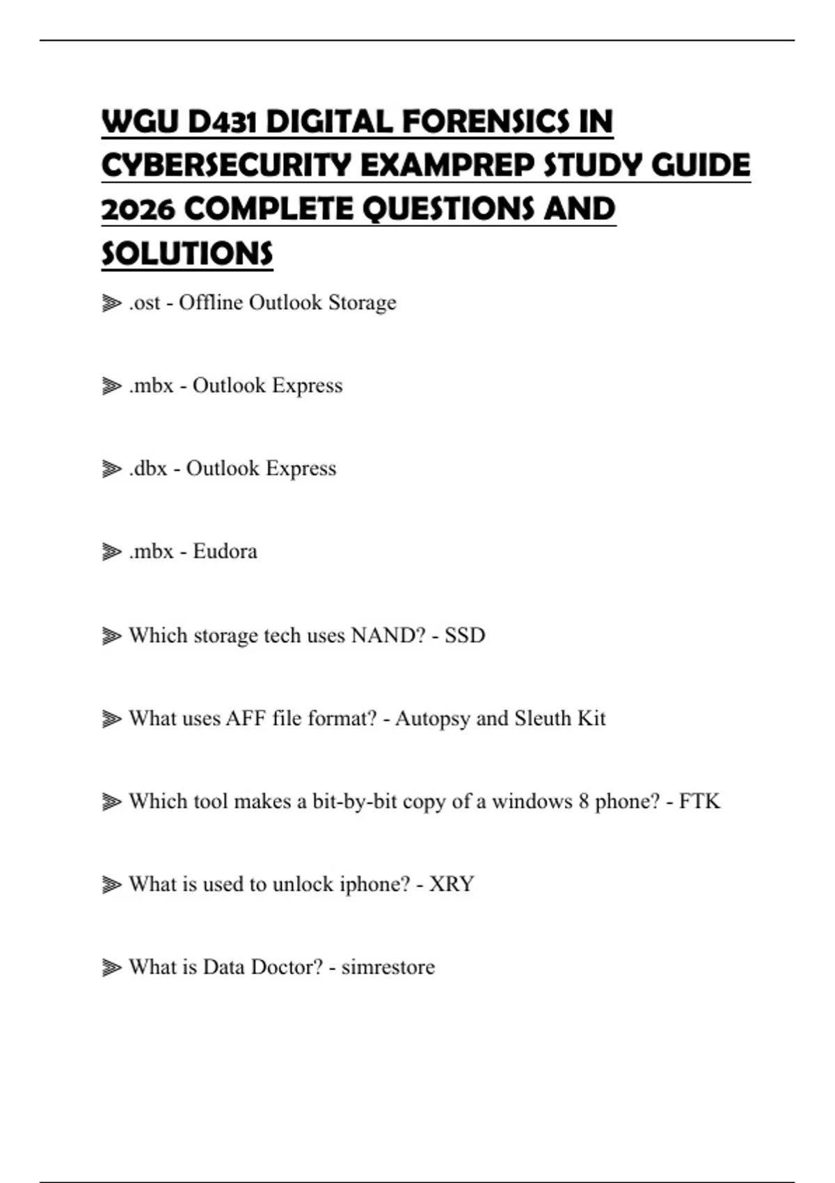 WGU D431 DIGITAL FORENSICS IN CYBERSECURITY EXAMPREP STUDY GUIDE 2026 COMPLETE QUESTIONS AND SOLUTIONS