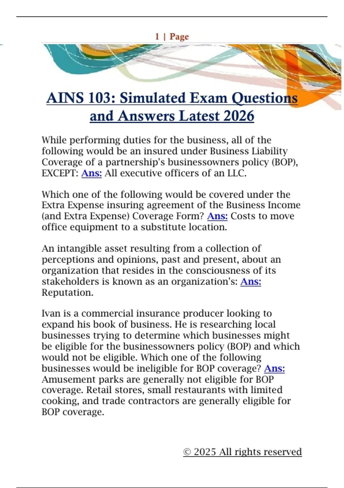 AINS 103: Simulated Exam Questions and Answers Latest 2026