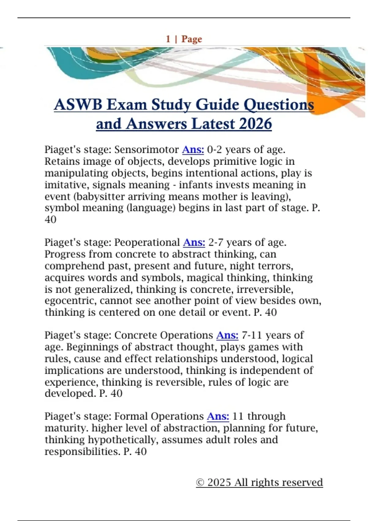 Piaget's stage: Sensorimotor Ans: 0-2 years of age.