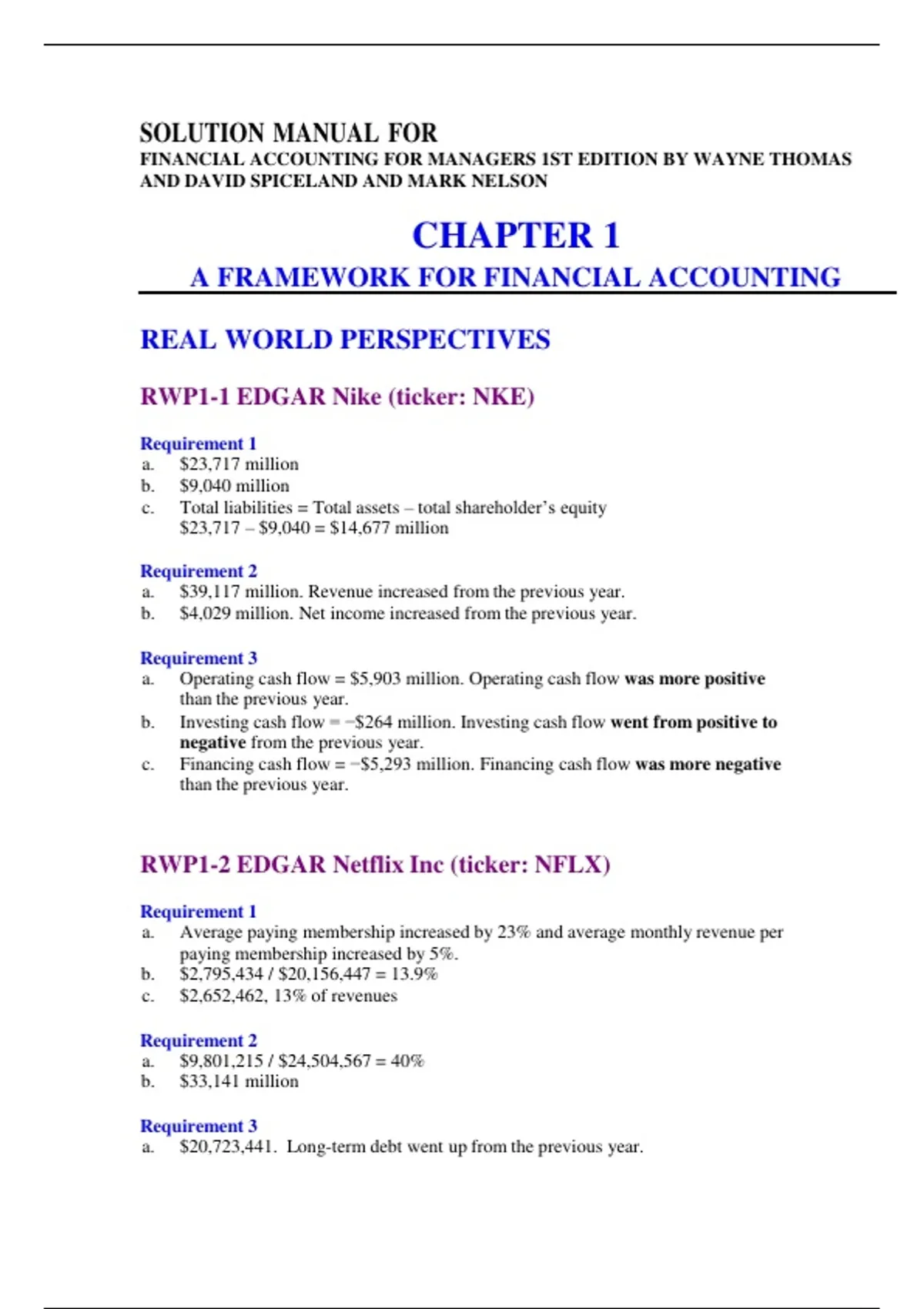 Financial Accounting for Managers 1st Edition Solution Manual by Wayne Thomas, David Spiceland & Mark Nelson – Latest Update 2026 | Graded A+
