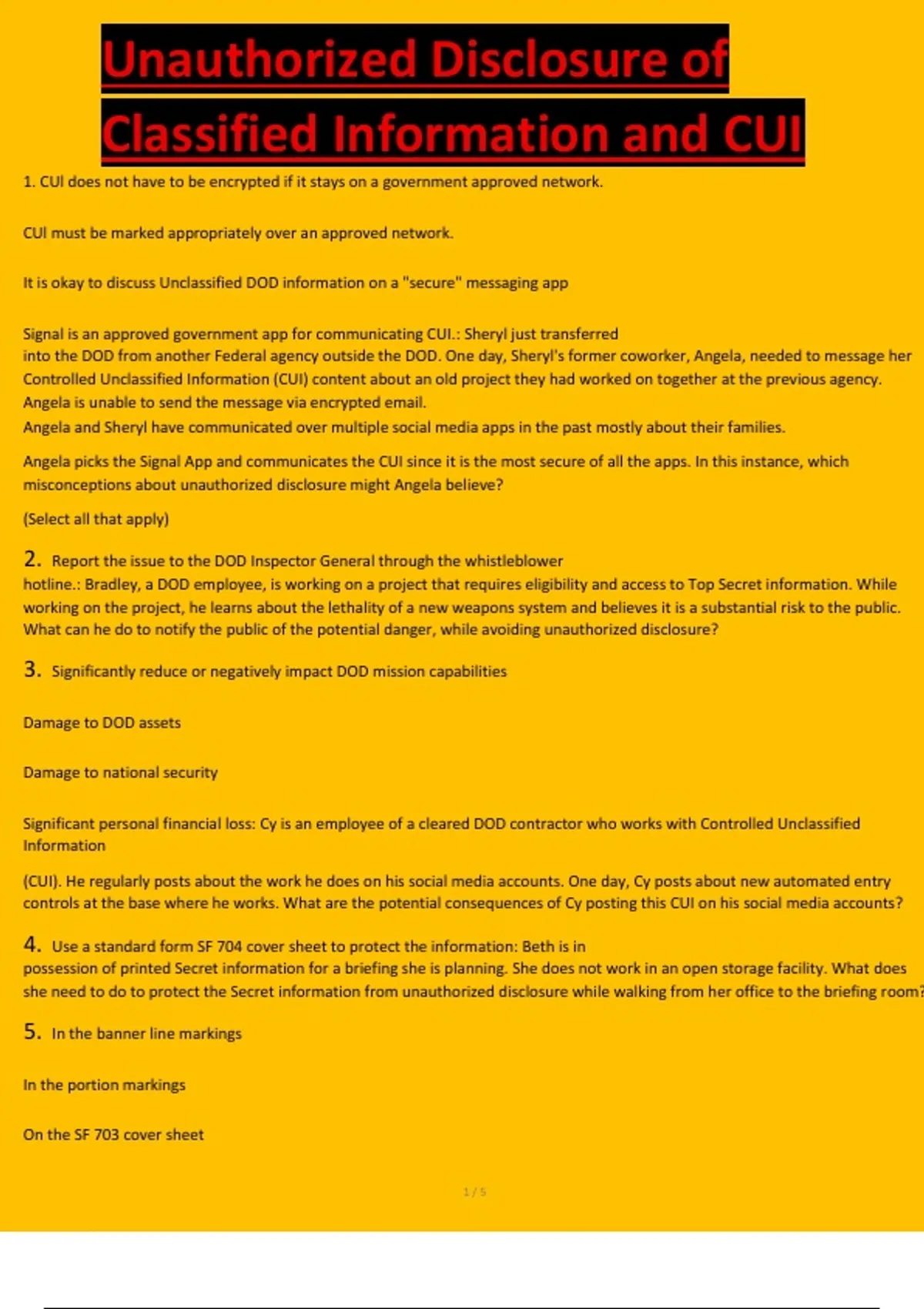Angela picks the Signal App and communicates the CUI since it is the most secure of all the apps. In this instance, which
