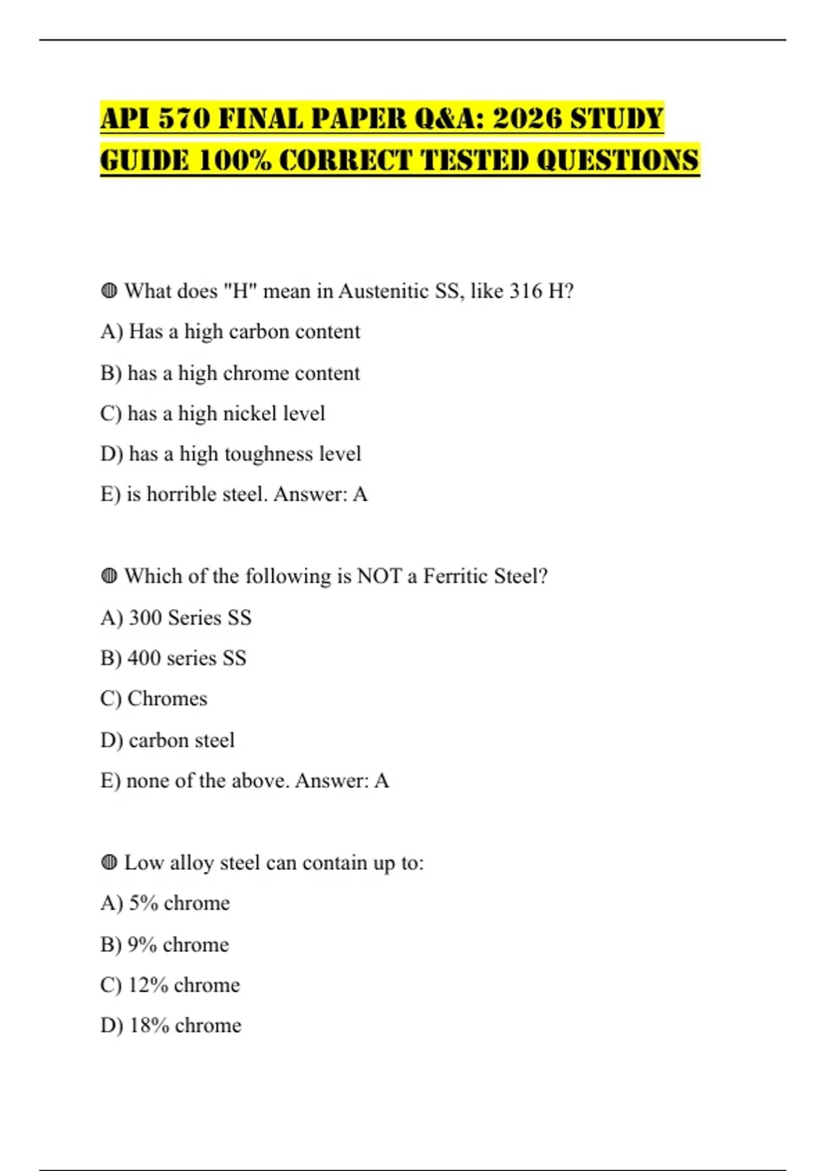GUIDE 100% CORRECT TESTED QUESTIONS