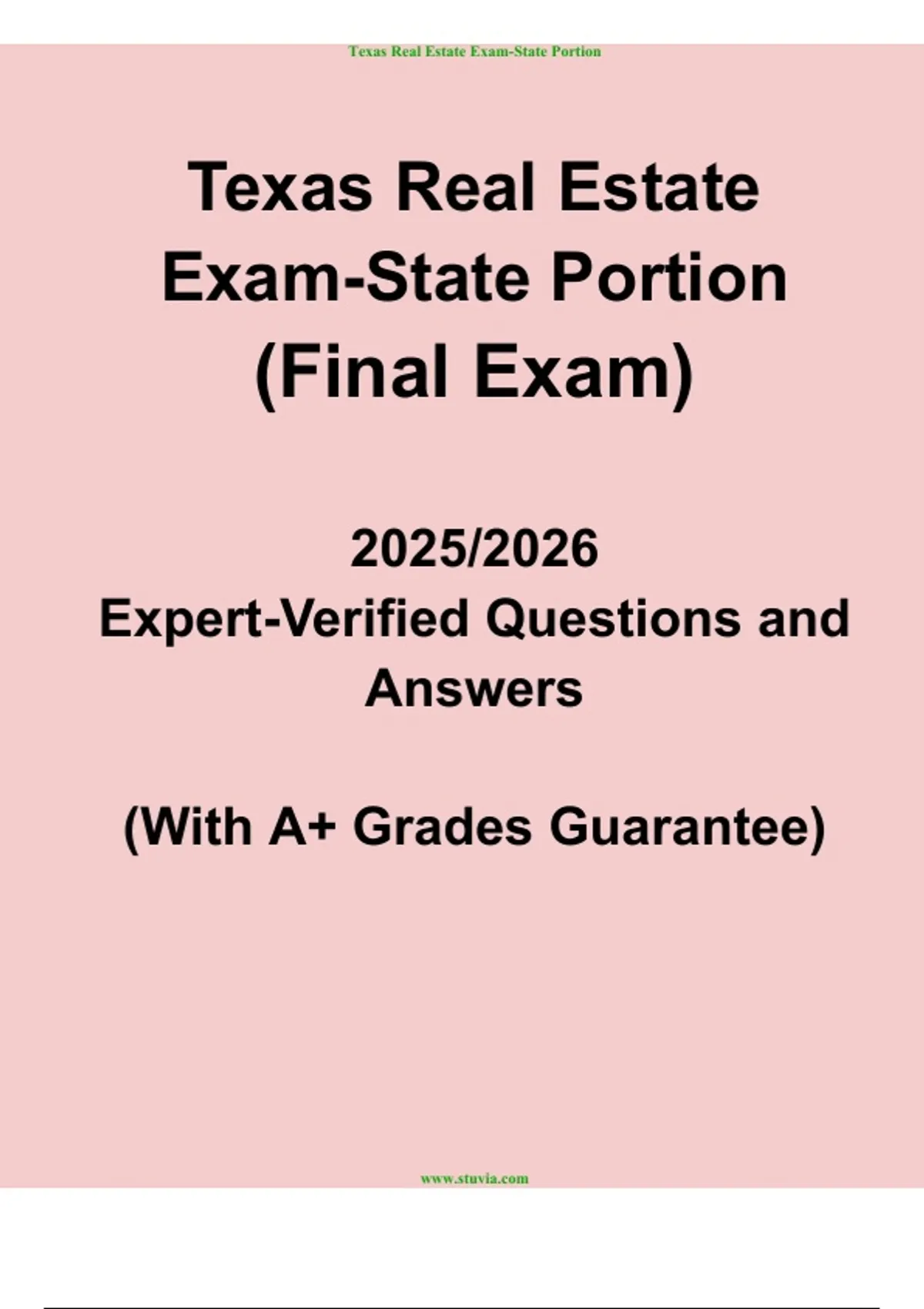 This Texas Real Estate Exam – State Portion PDF provides focused coverage of Texas-specific real estate laws, regulations, and licensing requirements, paired with practice questions to help candidates efficiently prepare and confidently pass the state portion of the Texas real estate exam.