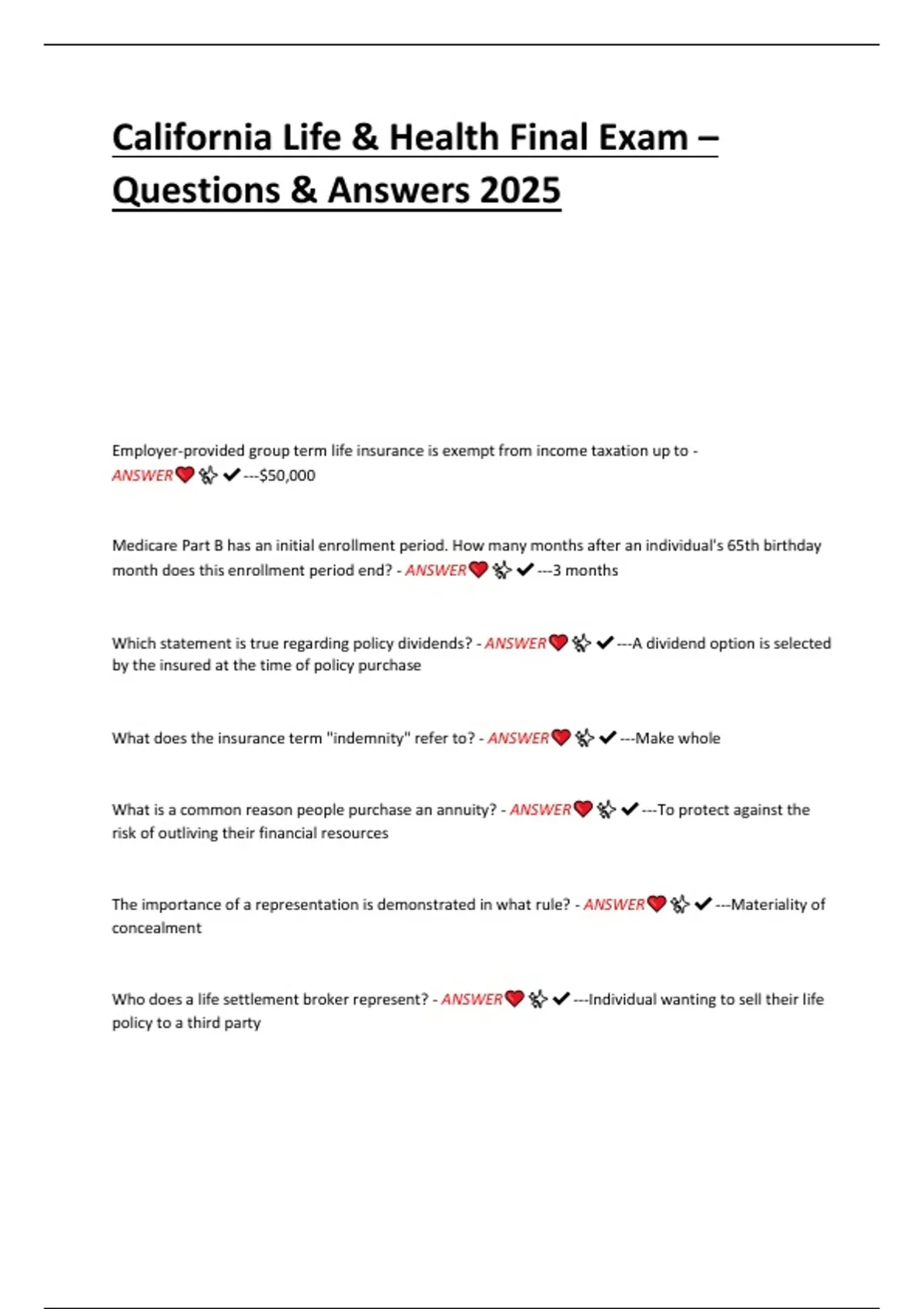 Prepare for the California Life & Health Final Exam with this 2025 guide. Includes real exam-style questions, detailed answers, and explanations for aspiring life and health insurance agents.