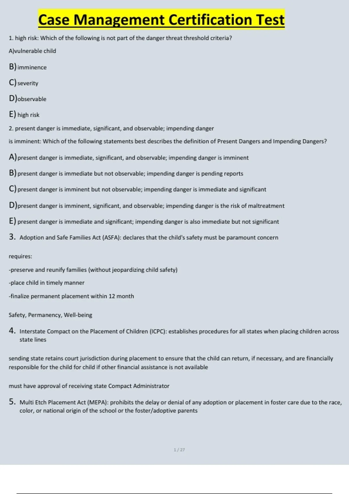8. Adoption Assistance and Child Welfare Act (ASFA): sets national minimum standards for key activities within states' child