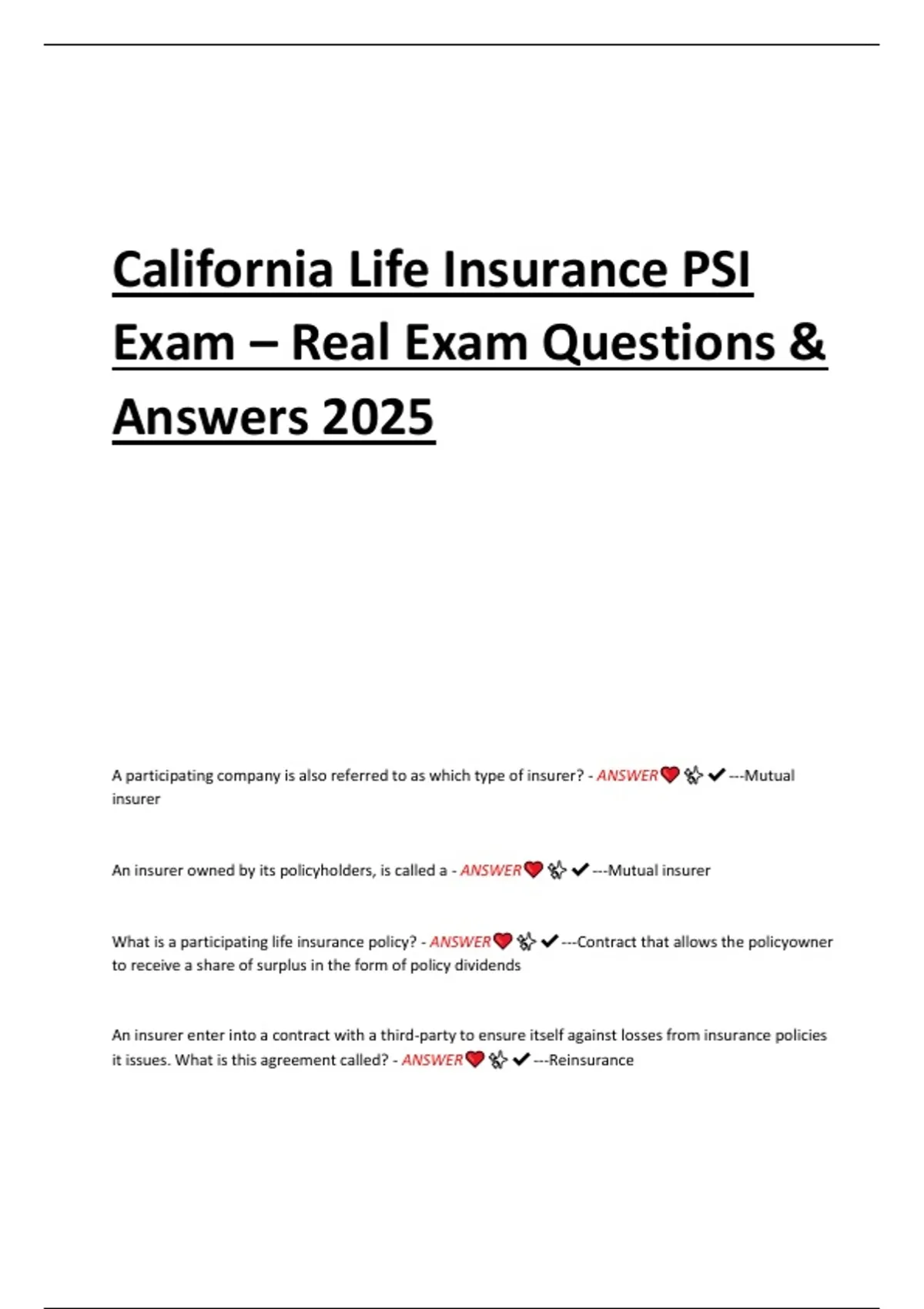 What is a participating life insurance policy? - ANSWER ✨✔---Contract that allows the policyowner