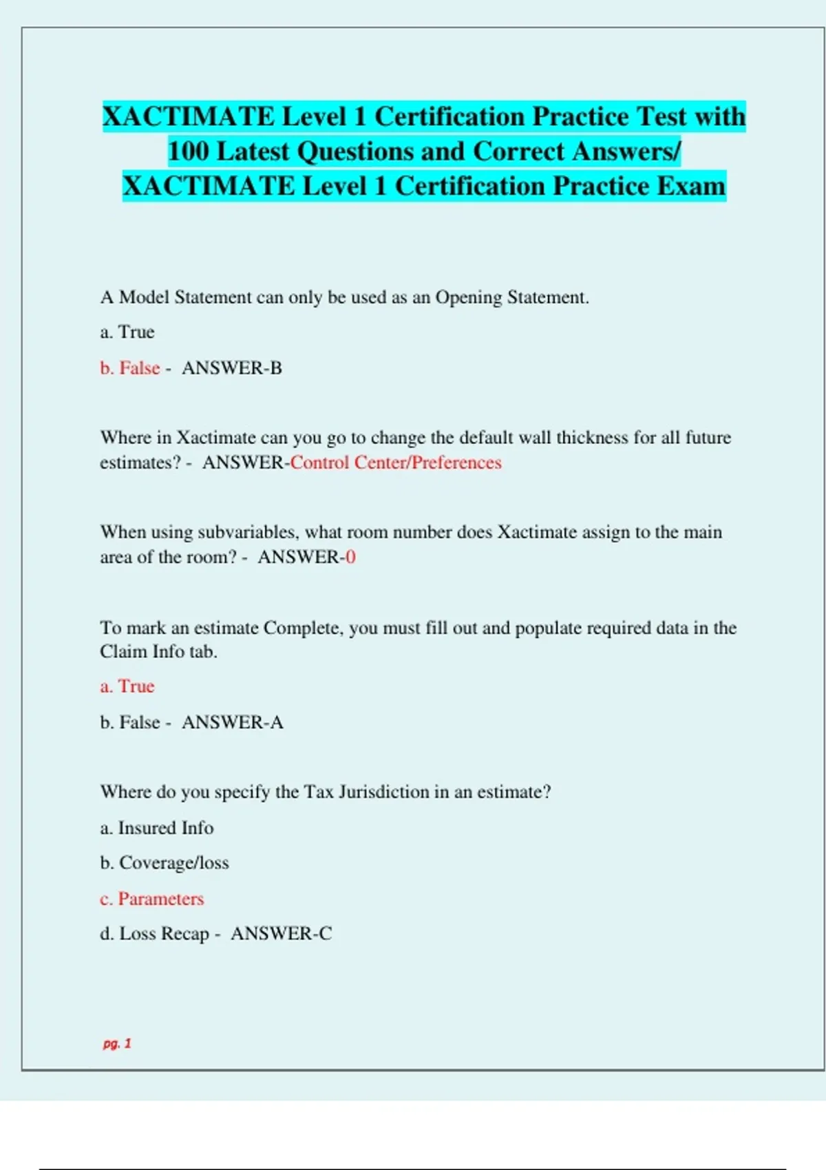 XACTIMATE Level 1 Certification Practice Test with