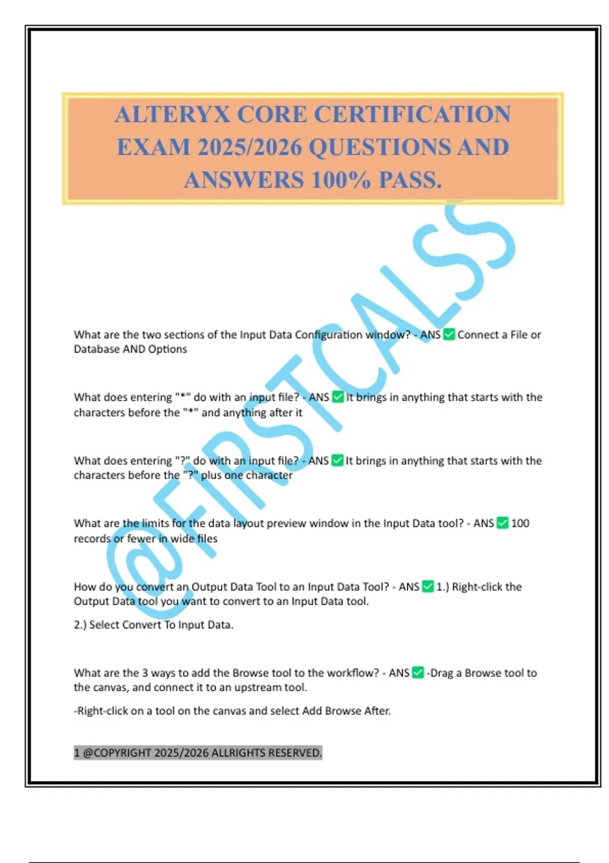 ALTERYX CORE CERTIFICATION EXAM 2025/2026 QUESTIONS AND ANSWERS 100% PASS.