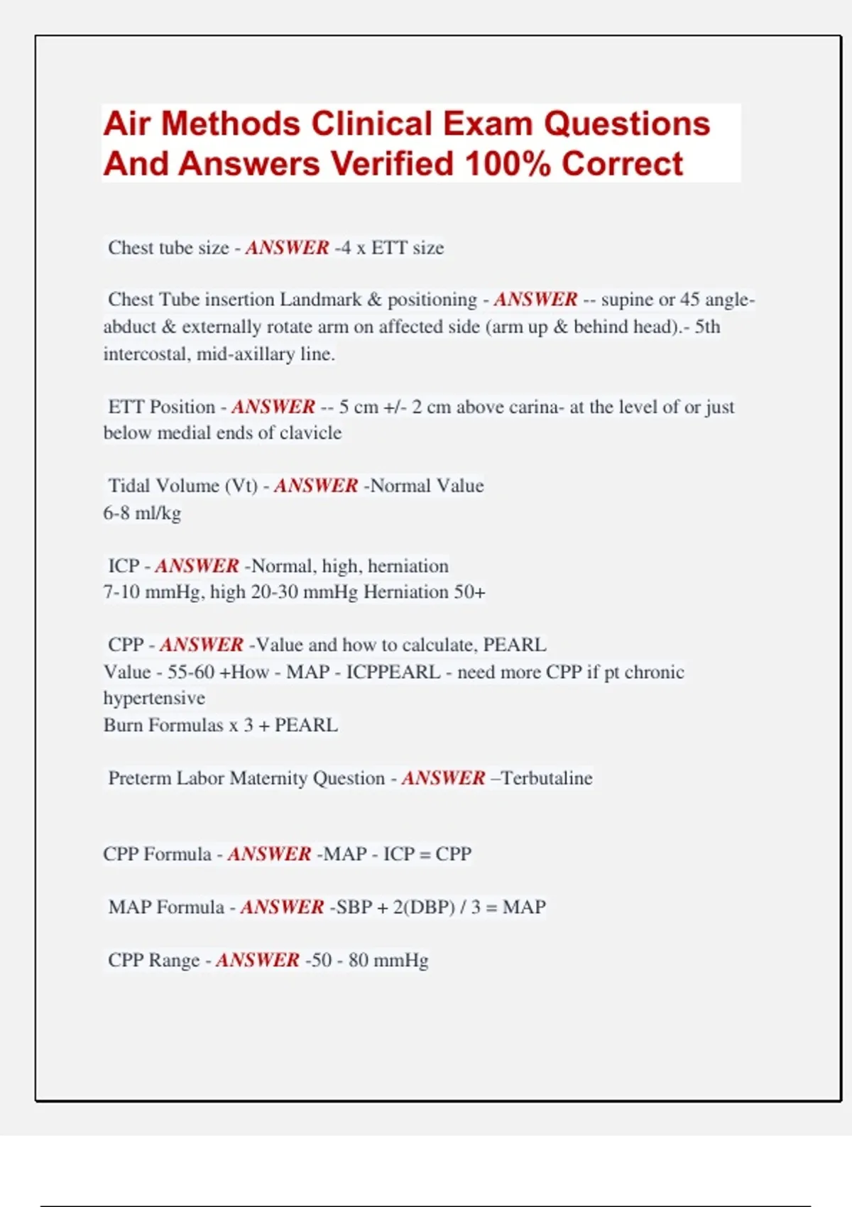 CPP Formula - ANSWER -MAP - ICP = CPP