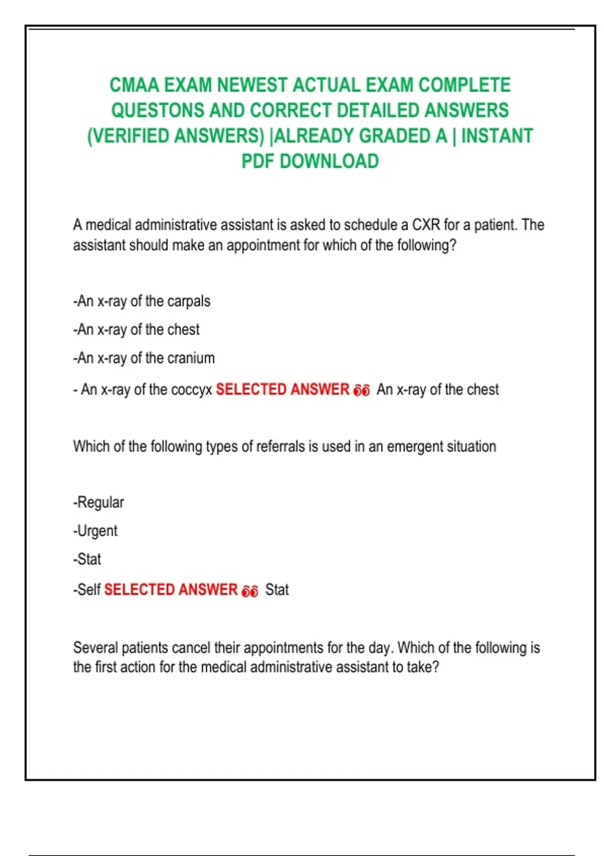 - An x-ray of the coccyx SELECTED ANSWER 👀 An x-ray of the chest