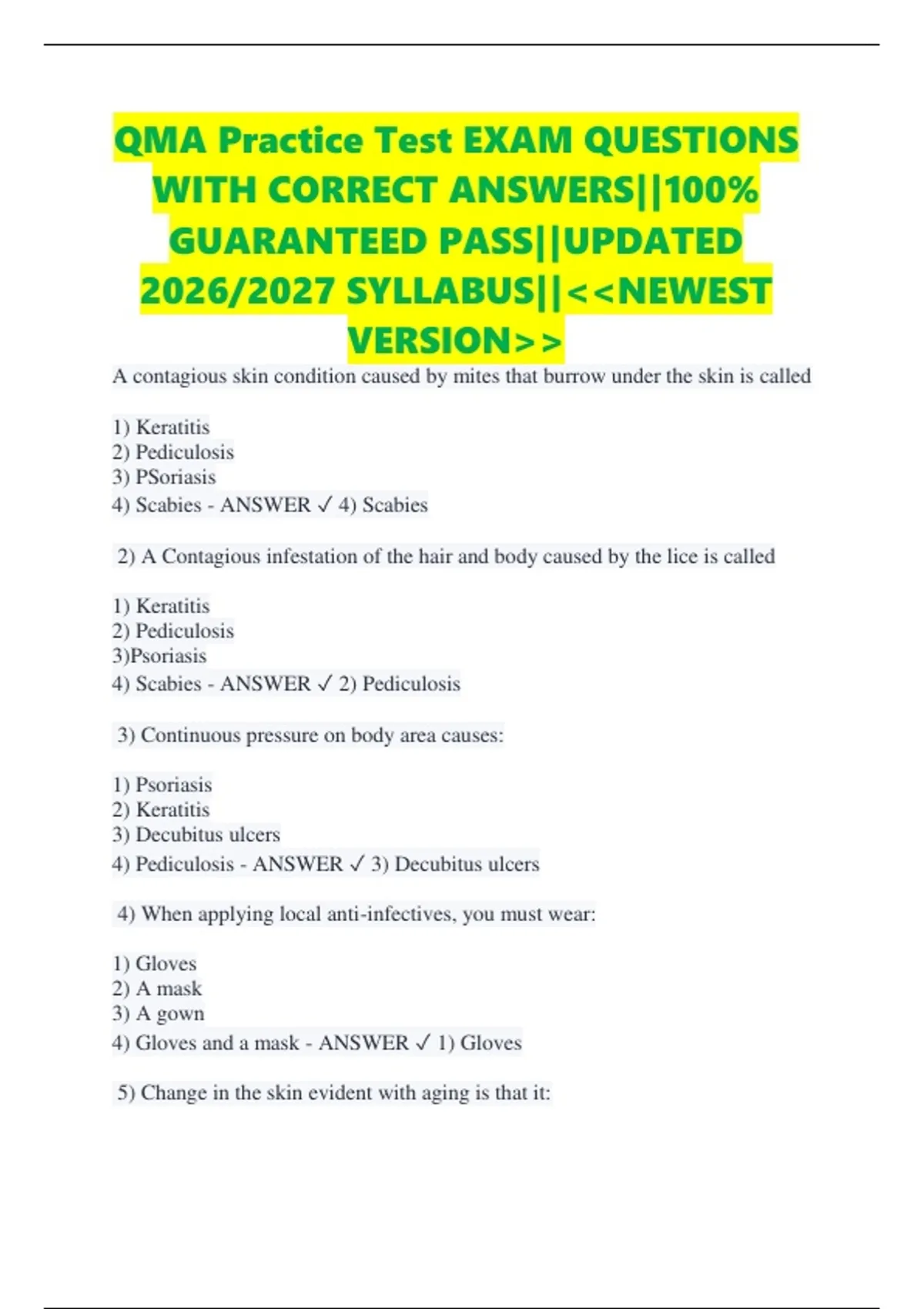 4) Pediculosis - ANSWER ✓ 3) Decubitus ulcers