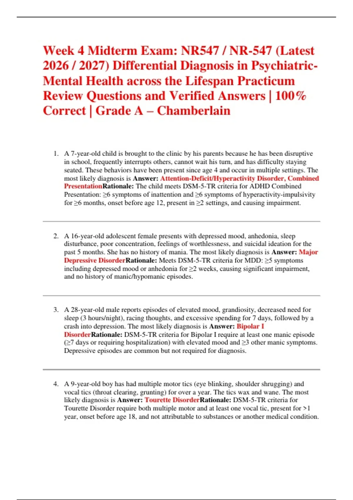 1. A 7-year-old child is brought to the clinic by his parents because he has been disruptive