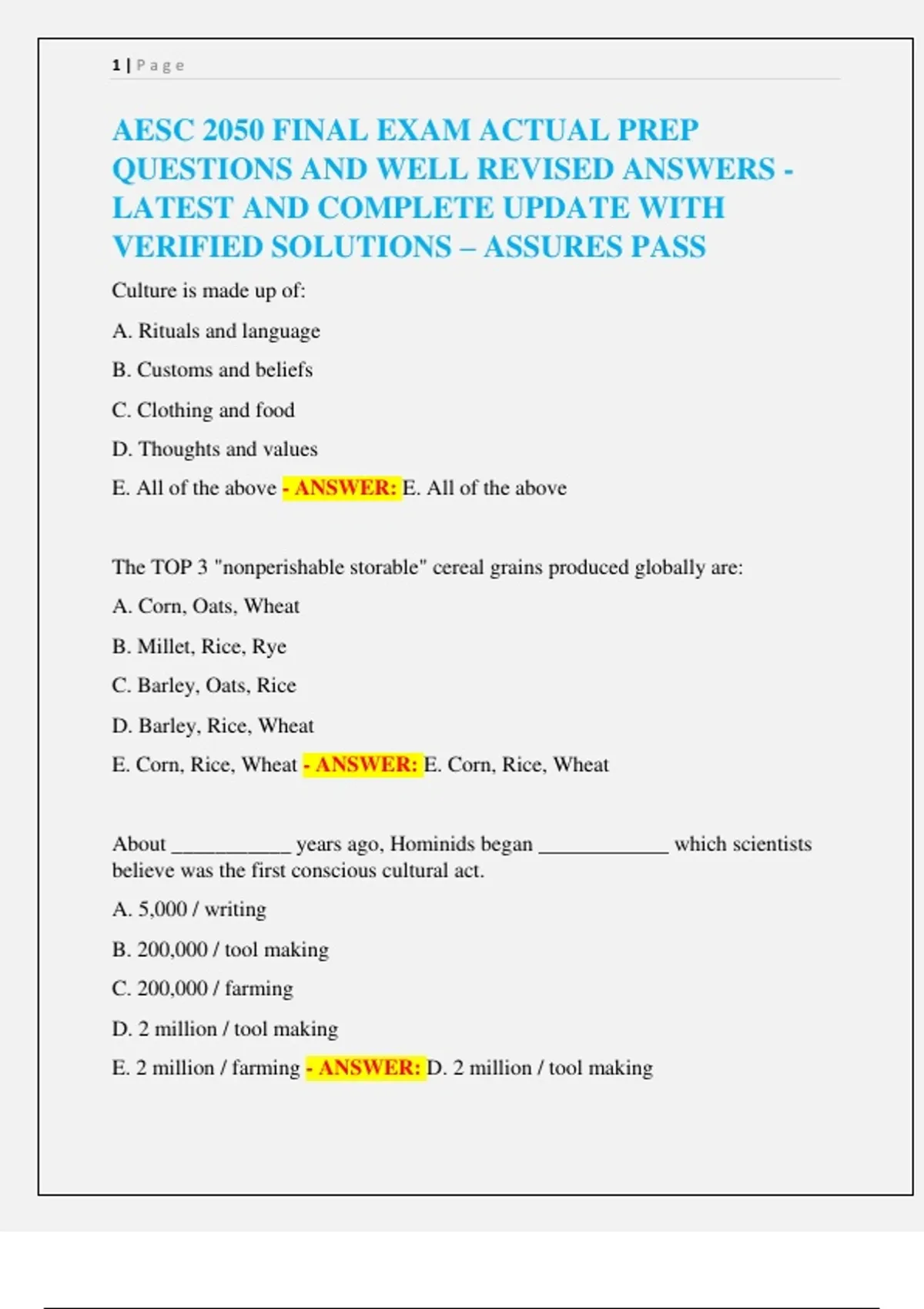 AESC 2050 FINAL EXAM ACTUAL PREP