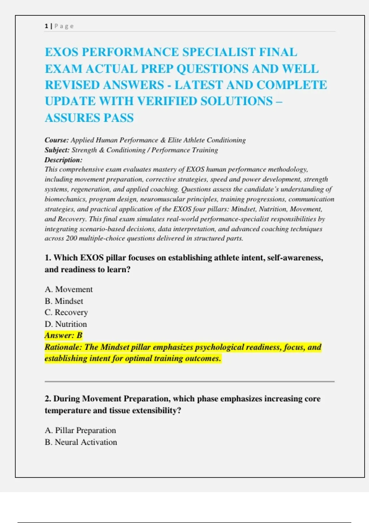 Get ready for the Exos Performance Specialist Final Exam with our comprehensive study guide. Access expert tips, key strategies, and essential resources to excel in the 2026 exam. Master the material and boost your chances of success with our proven preparation methods.