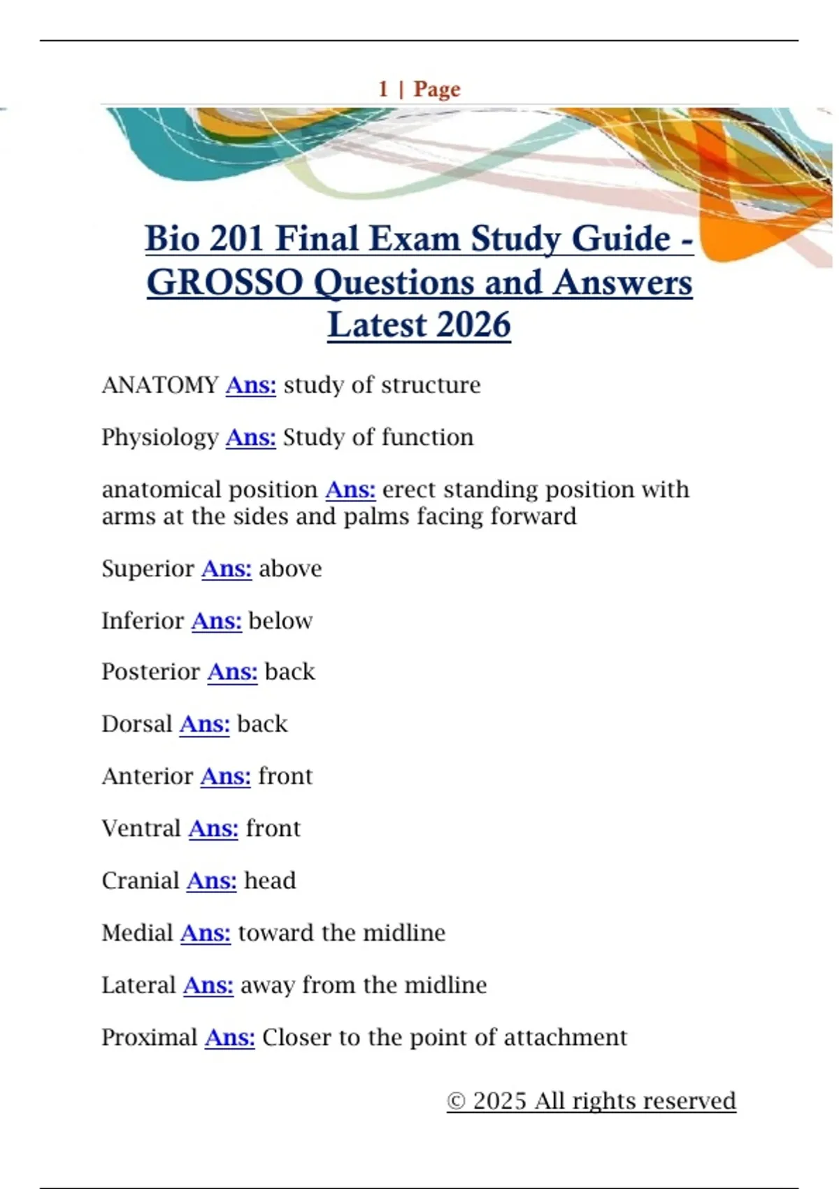 Bio 201 Final Exam Study Guide -