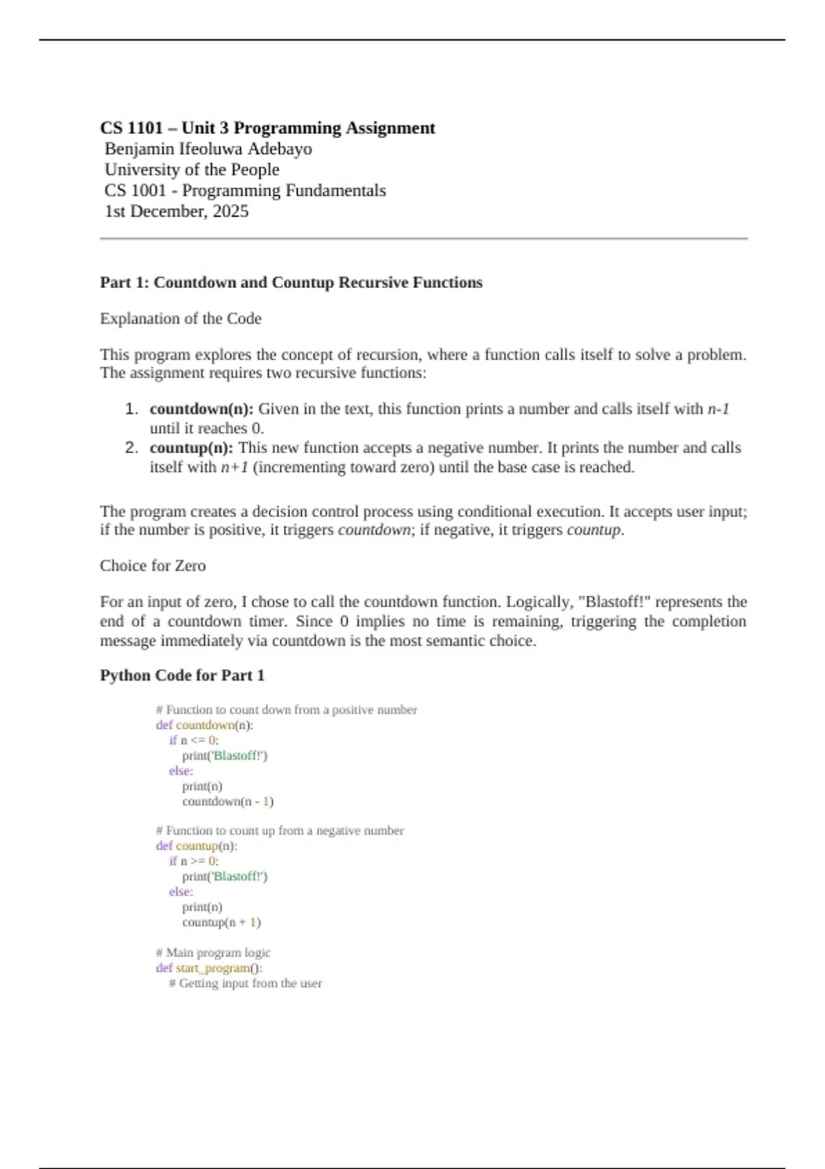 Part 1: Countdown and Countup Recursive Functions