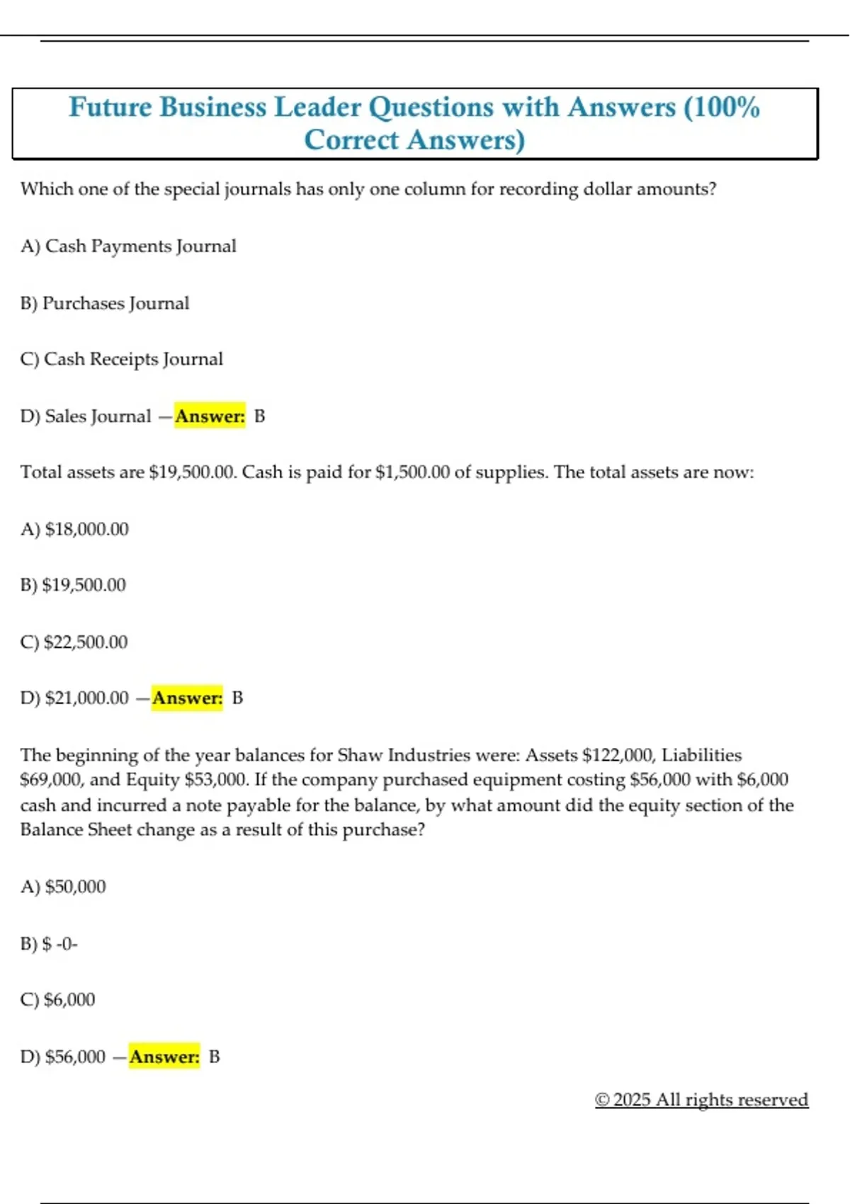 Future Business Leader Exam: Complete Questions & Verified Answers for 2026/2027
