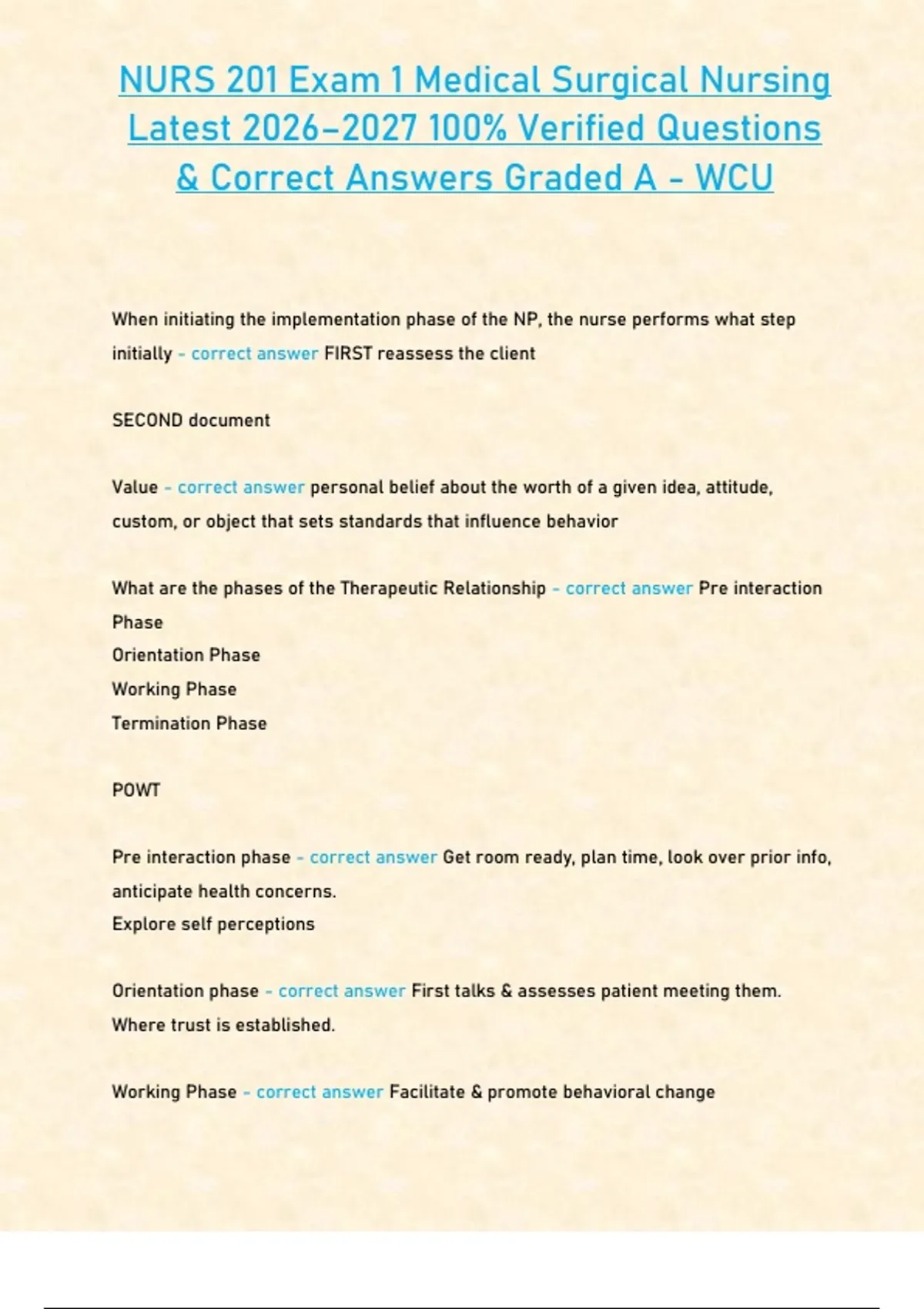 ,NURS 201 Exam 1 Medical Surgical Nursing